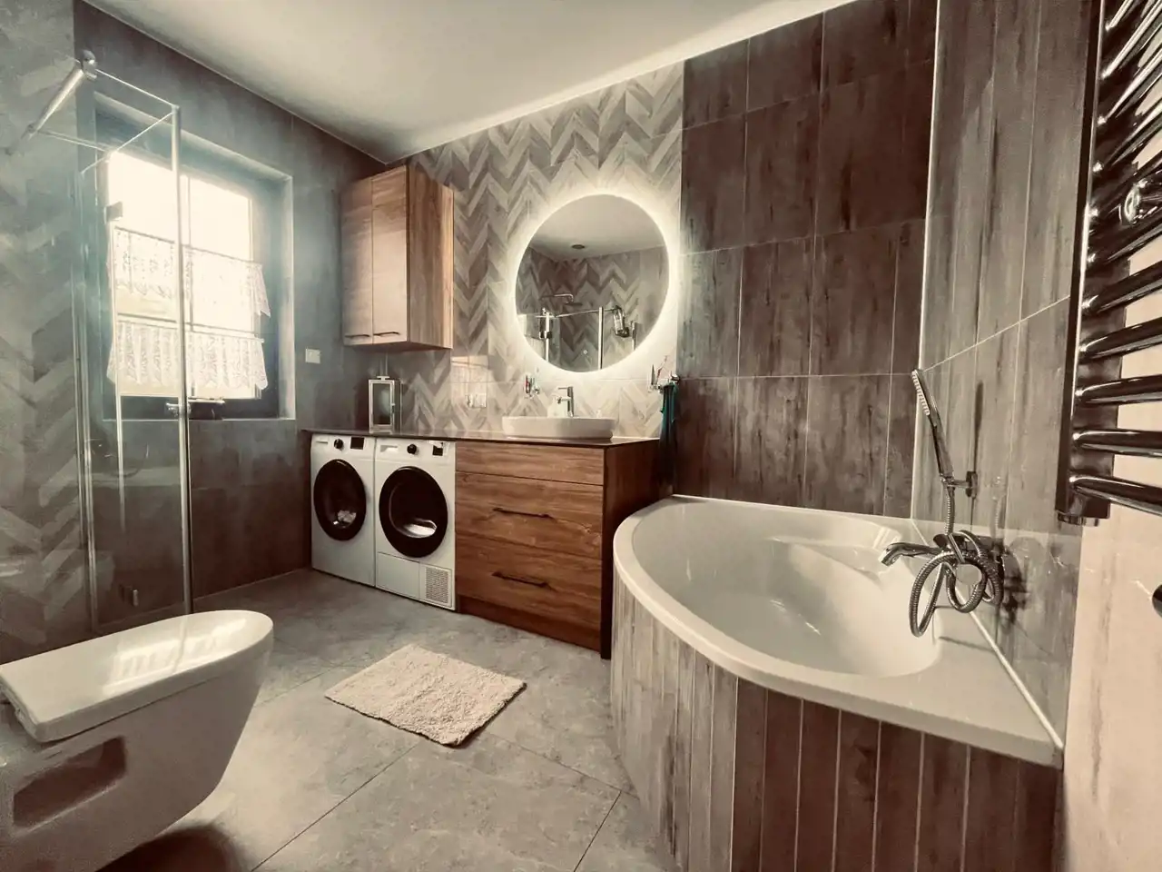 Łazienka główna z wanną i prysznicem