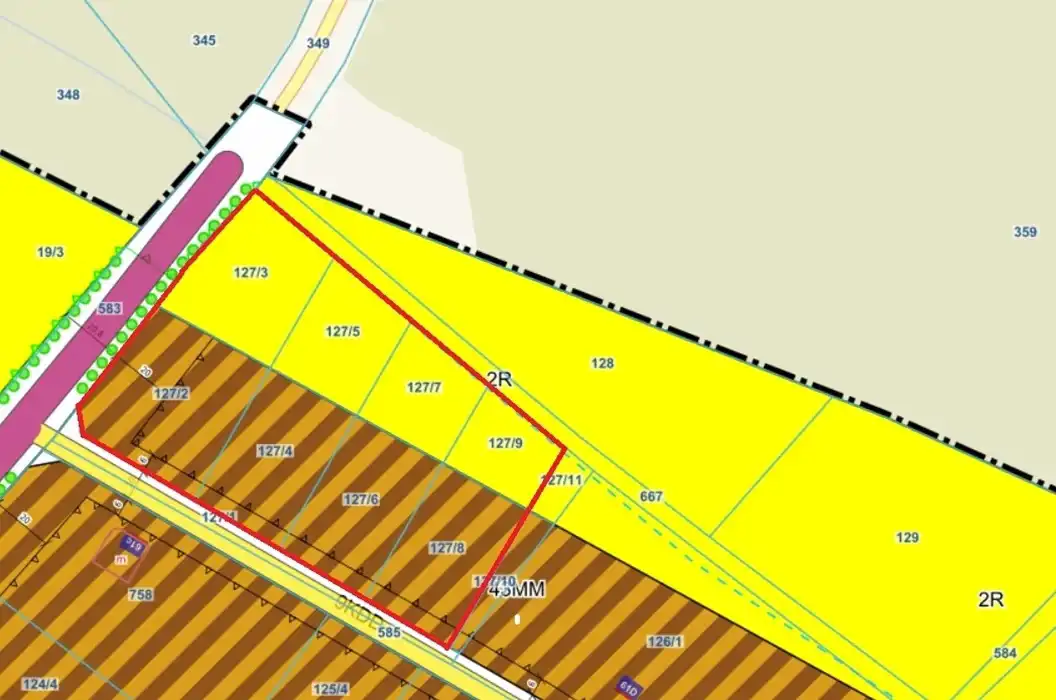 Na sprzedaż posiadamy 4 działki budowlano rolne oznaczone w MPZP symbolem 43MM- (tereny zabudowy mieszkaniowej jednorodzinnej, zagrodowej, usługowej) i 4 działki rolne, które znajdują się bezpośrednio za działkami budowlanymi i pełnią rolę terenu powiększającego działkę budowlaną.