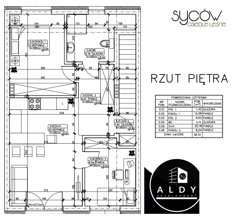 - Charakterystyka mieszkania 56 m2, 3 pokoje