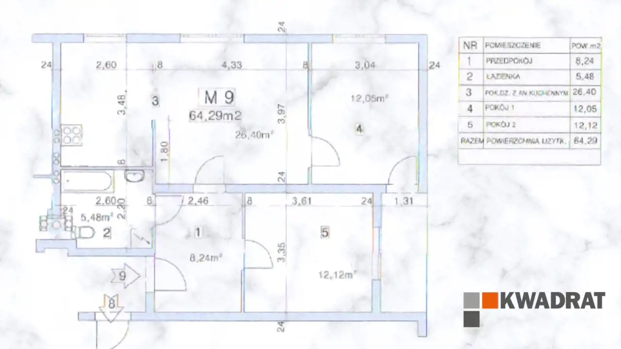 - Charakterystyka mieszkania 64.29 m2, 3 pokoje