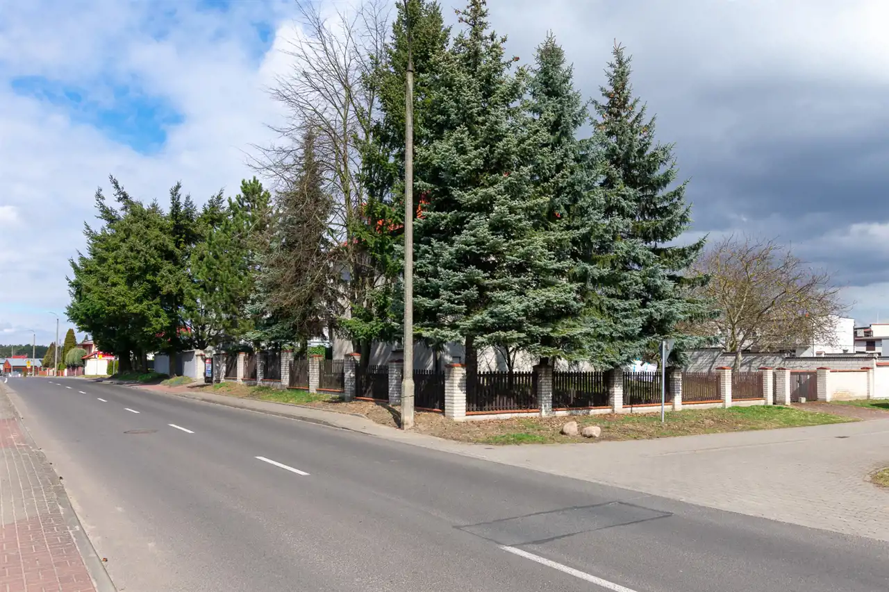 Działka o powierzchni 613 m² jest osłonięta drzewami od strony ulicy, co zapewnia większą prywatność i spokój.