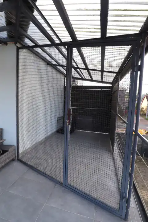 DUŻY TARAS Z WYDZIELONĄ I OGRODZONA WOLIERĄ DLA ZWIERZĄT