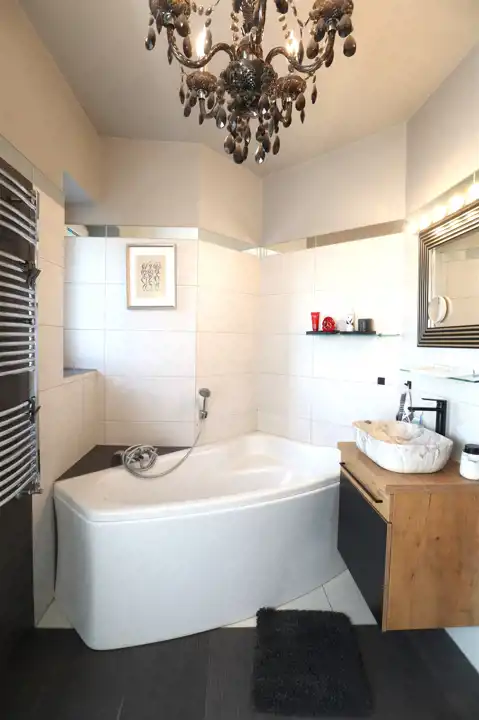 • łazienka z wanną i z prysznicem oraz z WC- pow. 5,6m2, kapitalny remont w 2024r. Wyjście na taras o pow. 16,5m2.