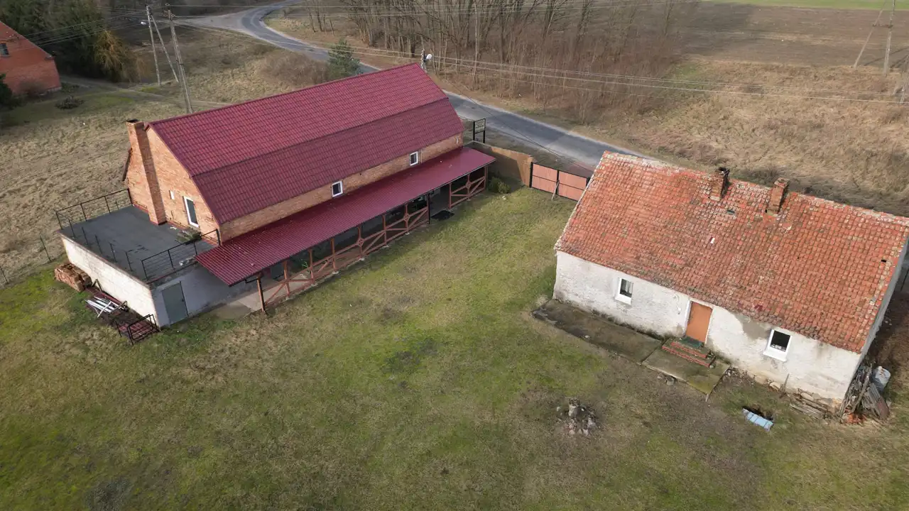Tytułem oferty jest dom z lat 30-stych do własnej aranżacji oraz odnowiony budynek stodoły przerobiony na lokal gastronomiczny. Budynek jest dwukondygnacyjny. Na parterze znajduje się sala główna ze sceną, kuchnia, sanitariaty oraz pomieszczenia gospodarcze. Na piętrze druga sala, łazienka, wc oraz wyjście na taras. Istnieje możliwość zrobienia pokoi gościnnych.