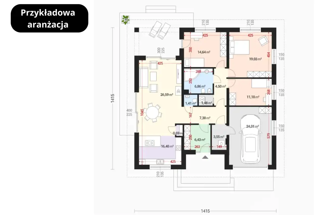 Nowy dom parterowy w Atanazynie – 115 + 29 m² na działce 852 m²