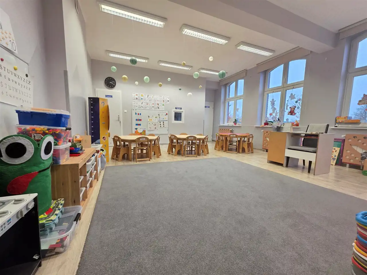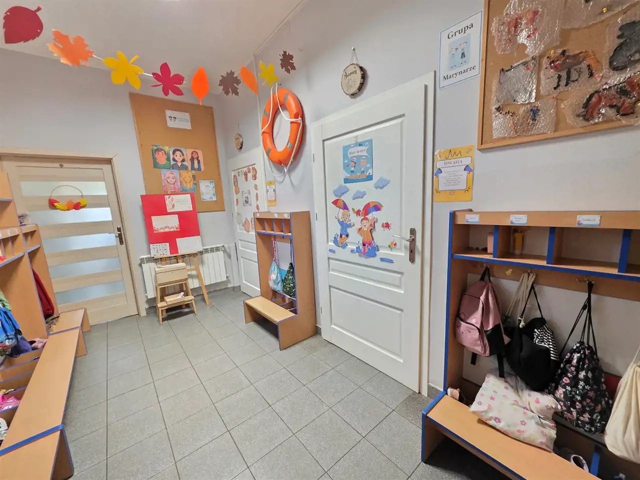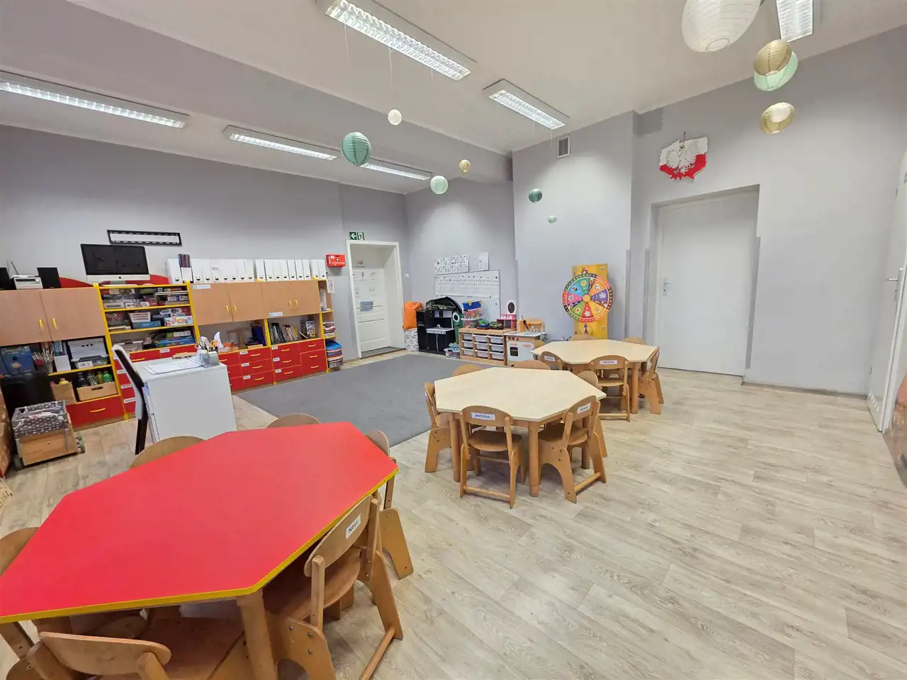 Na parterze znajduje się **funkcjonujące przedszkole**, przygotowane na ponad 30 dzieci, z pełną dokumentacją i aktualnymi odbiorami (BHP, PPOŻ, SANEPID).