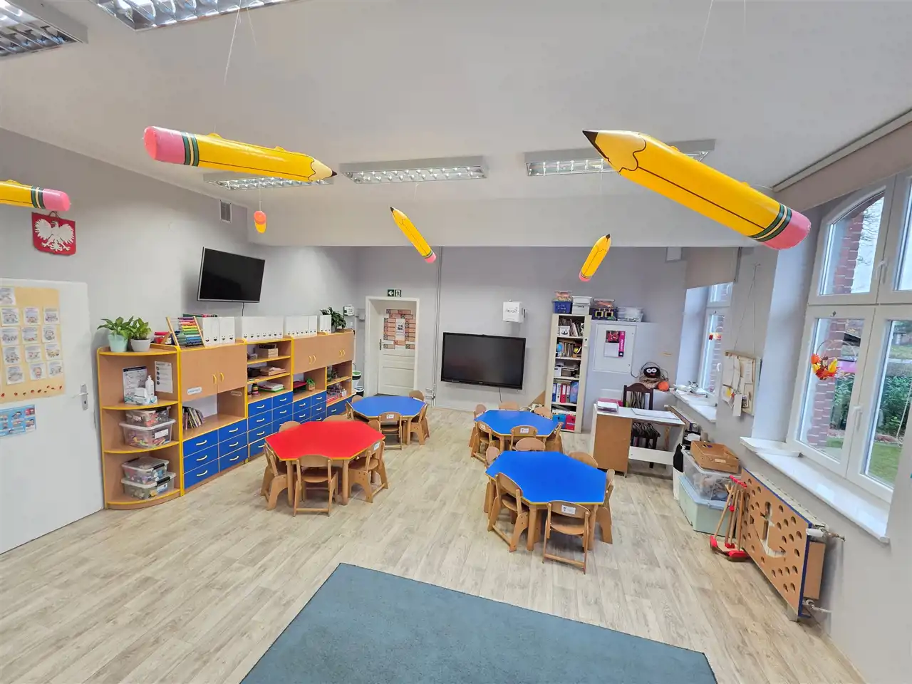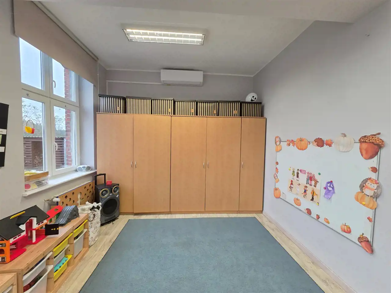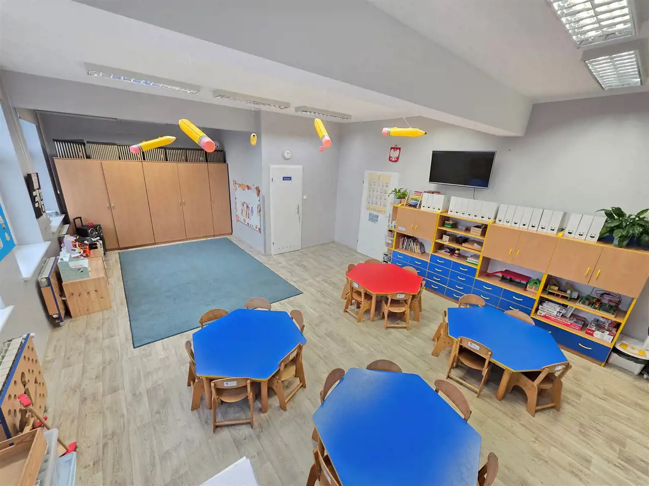 Na parterze znajduje się **funkcjonujące przedszkole**, przygotowane na ponad 30 dzieci, z pełną dokumentacją i aktualnymi odbiorami (BHP, PPOŻ, SANEPID).