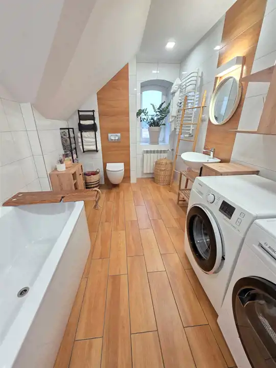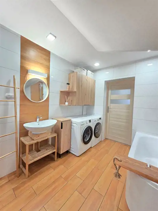 * kuchni z jadalnią (22,5 m²) – w cenie zostaje zabudowa kuchenna z kuchenką gazową z piekarnikiem oraz zmywarka, lodówko-zamrażarka