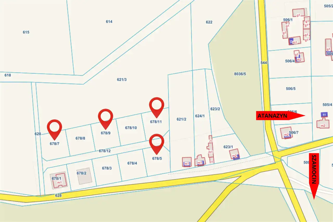 - numer ewidencyjny działki 678/5 – powierzchnia 876 m² - cena 87.600 zł