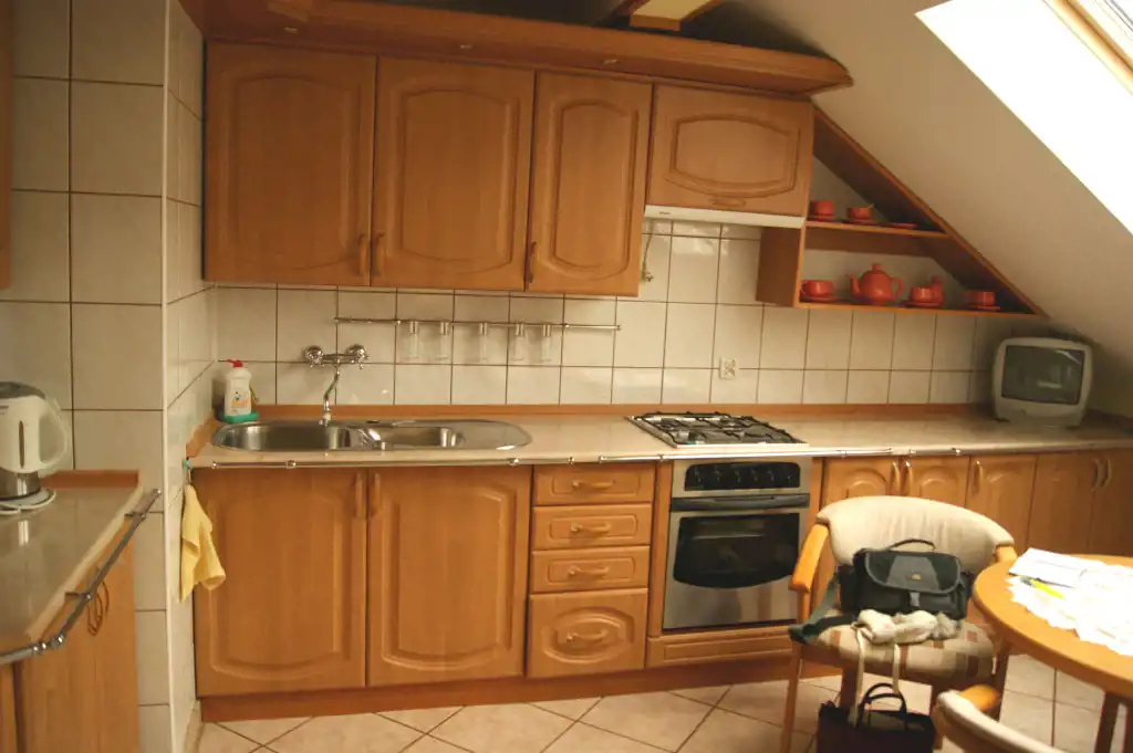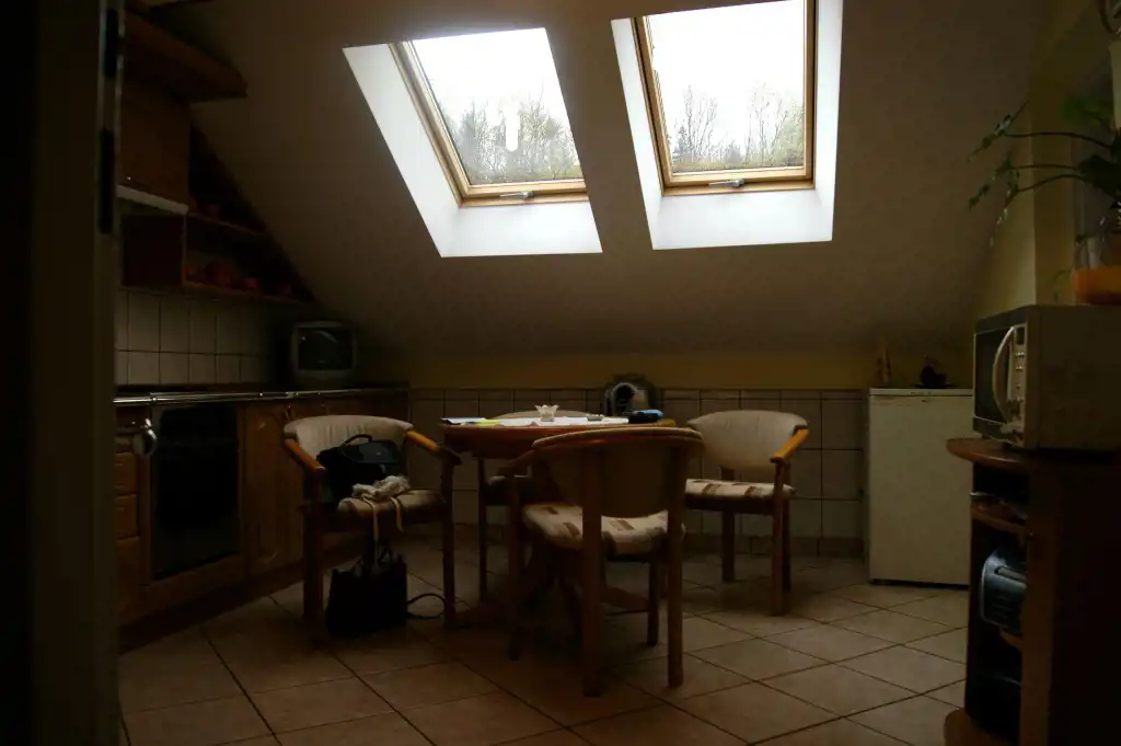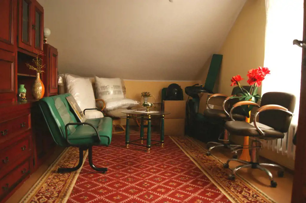Na nieruchomość składają się 4 pokoje, duża jasna łazienka z WC, kuchnia z jadalnią , spory przedpokój oraz pomieszczenie gospodarcze. Do mieszkania przynależy duża część strychu.