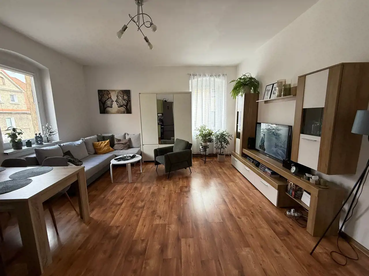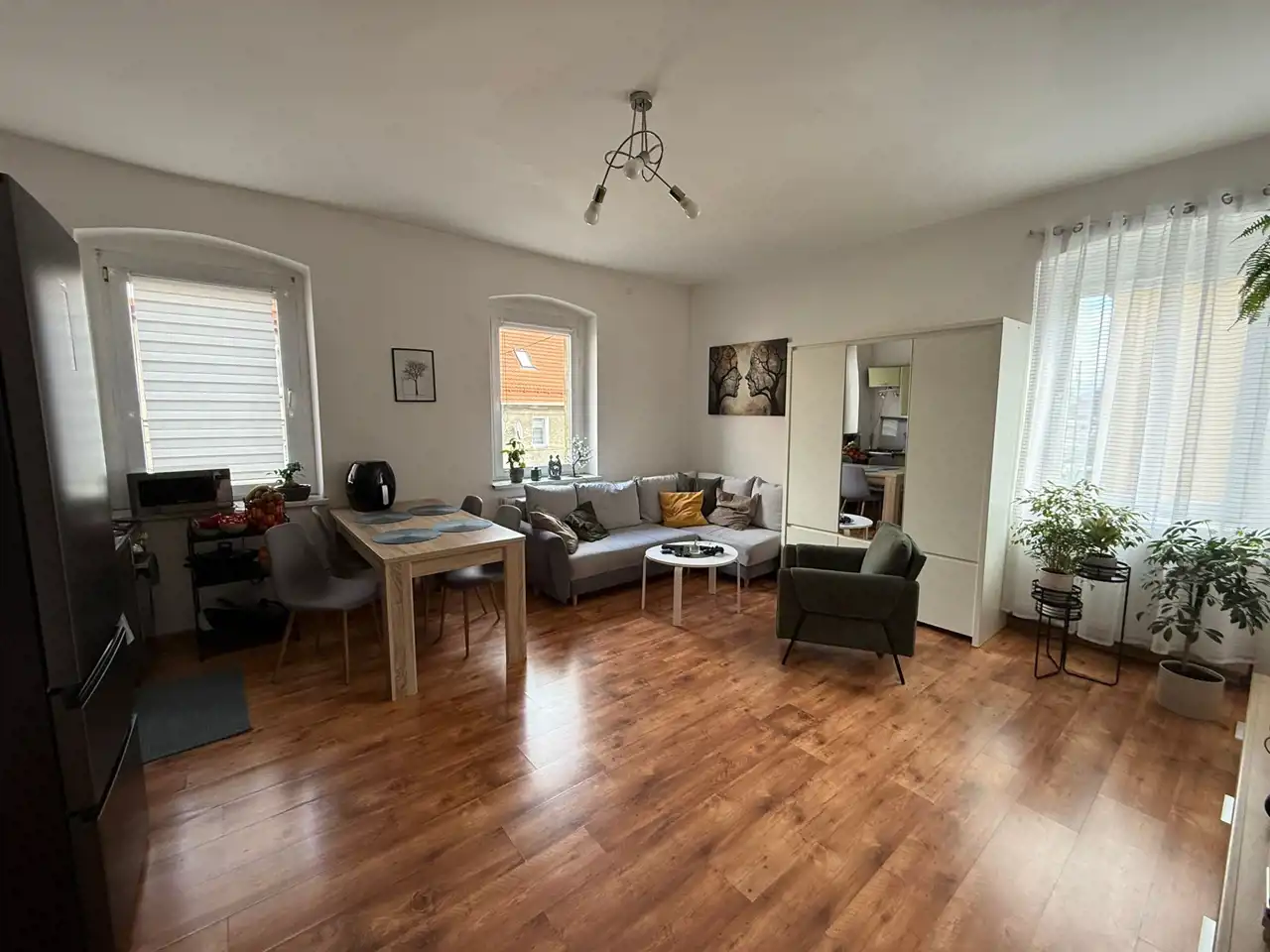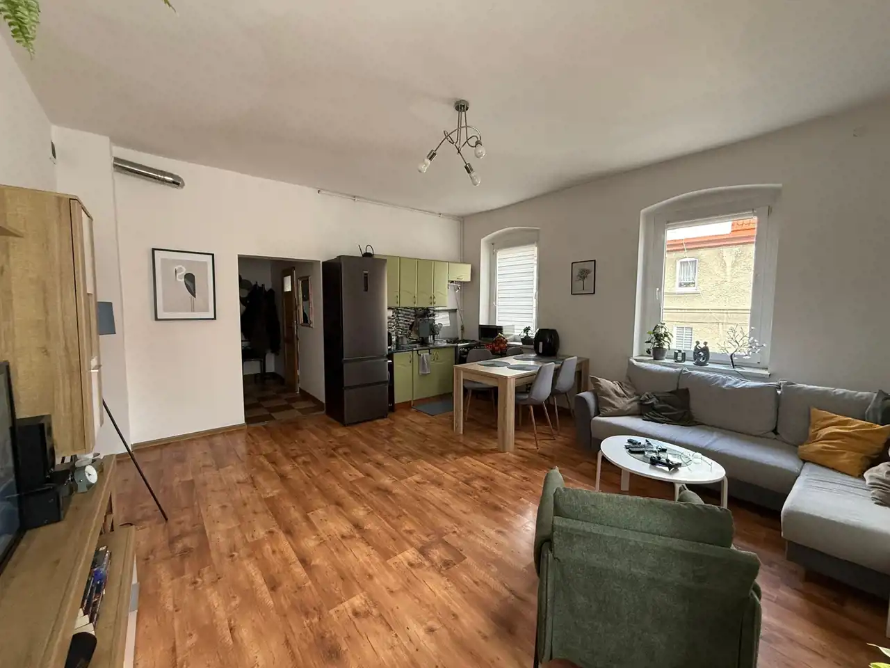 Mieszkanie składa się z salonu połączonego z kuchnią, dwóch sypialni, łazienki i toalety oraz przedpokoju. Kamienica po wymianie dachu, klatka schodowa w dobrym stanie.