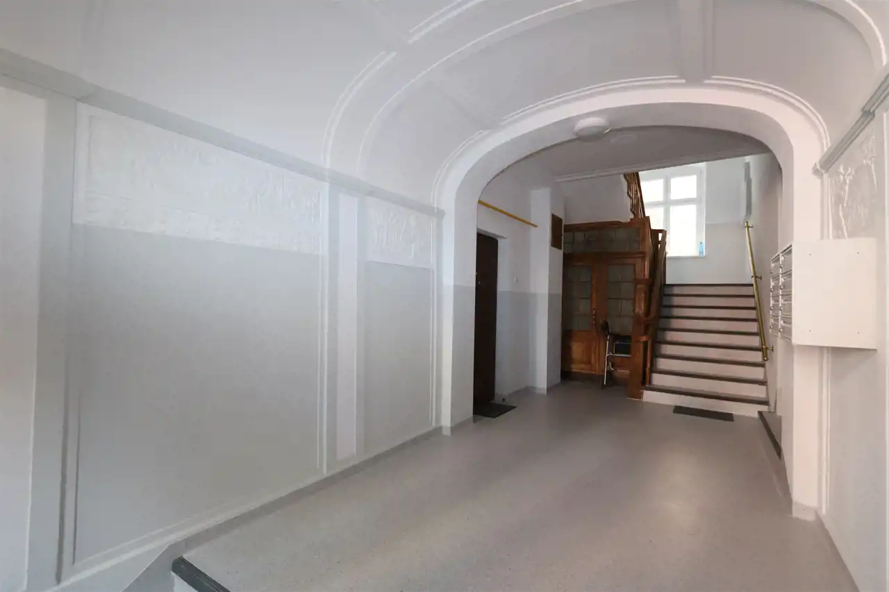 Piękna zadbana kamienica, klatka schodowa po remoncie.