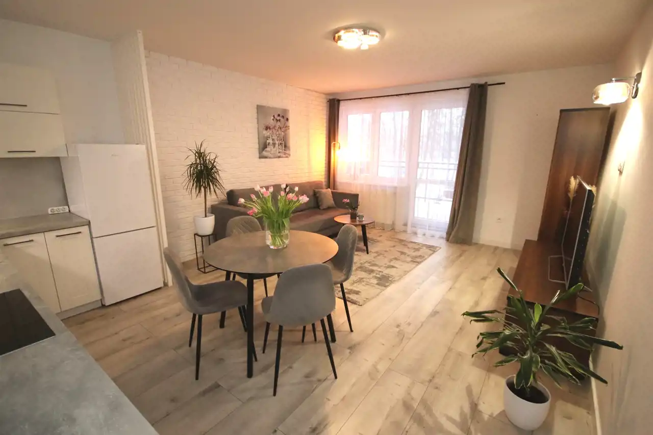 - Spokojna i dobrze skomunikowana lokalizacja z centrum uzdrowiska.