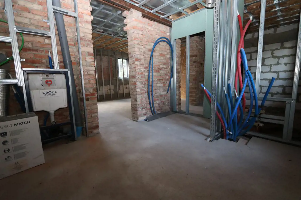 W łazienkach przygotowano wszystkie wyprowadzenia wodne (rozdzielacze) oraz zamontowany geberity firmy Grohe (miski WC również Grohe w zestawie). Dodatkowo wanna wolnostojąca na wyposażeniu. Obydwa prysznice posiadają wyprowadzone odpływy liniowe (odpływy na wyposażeniu)