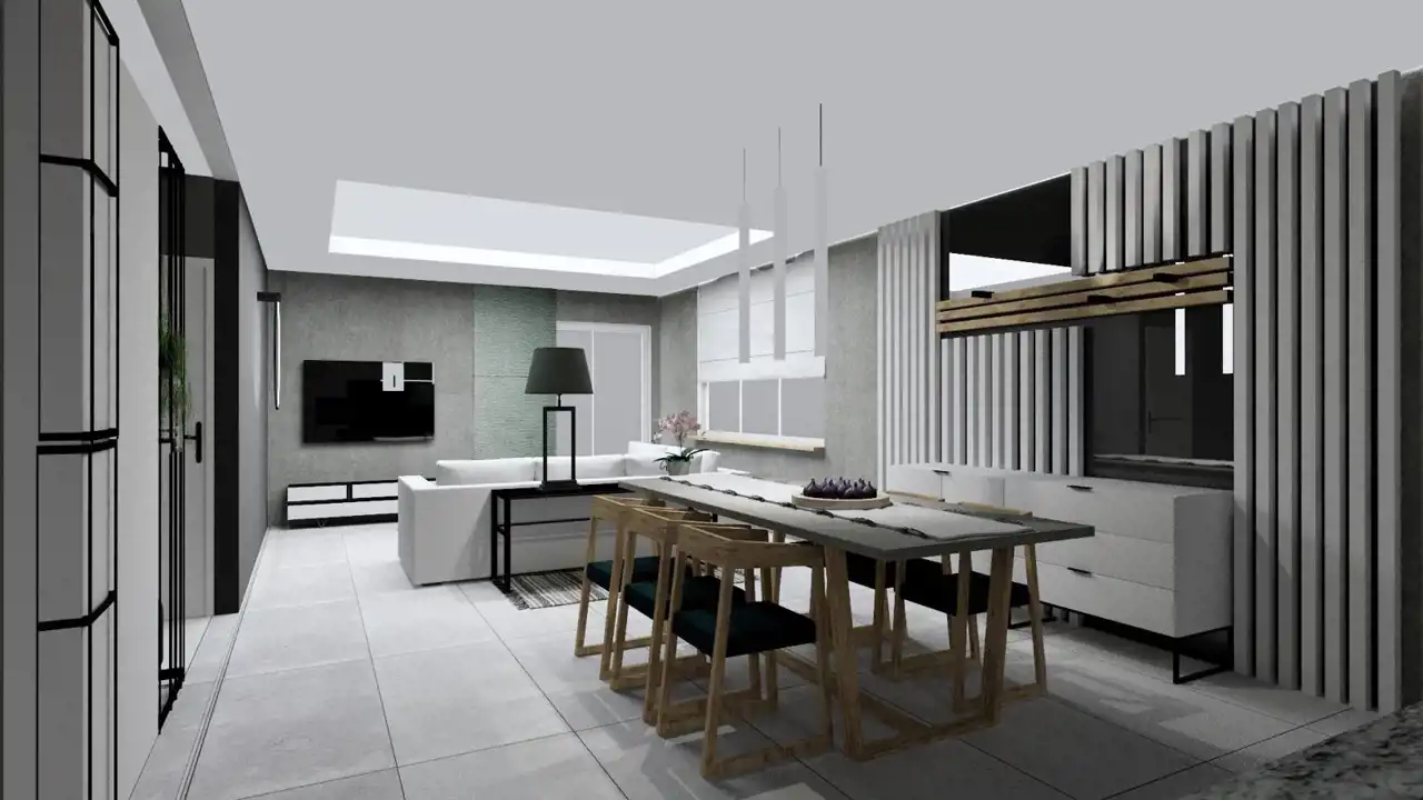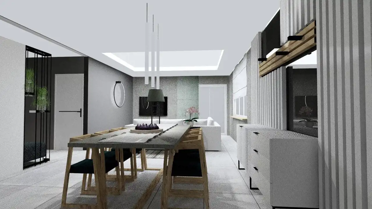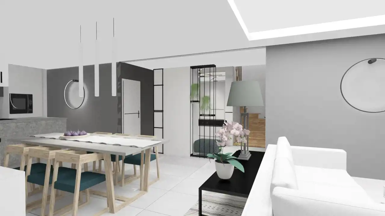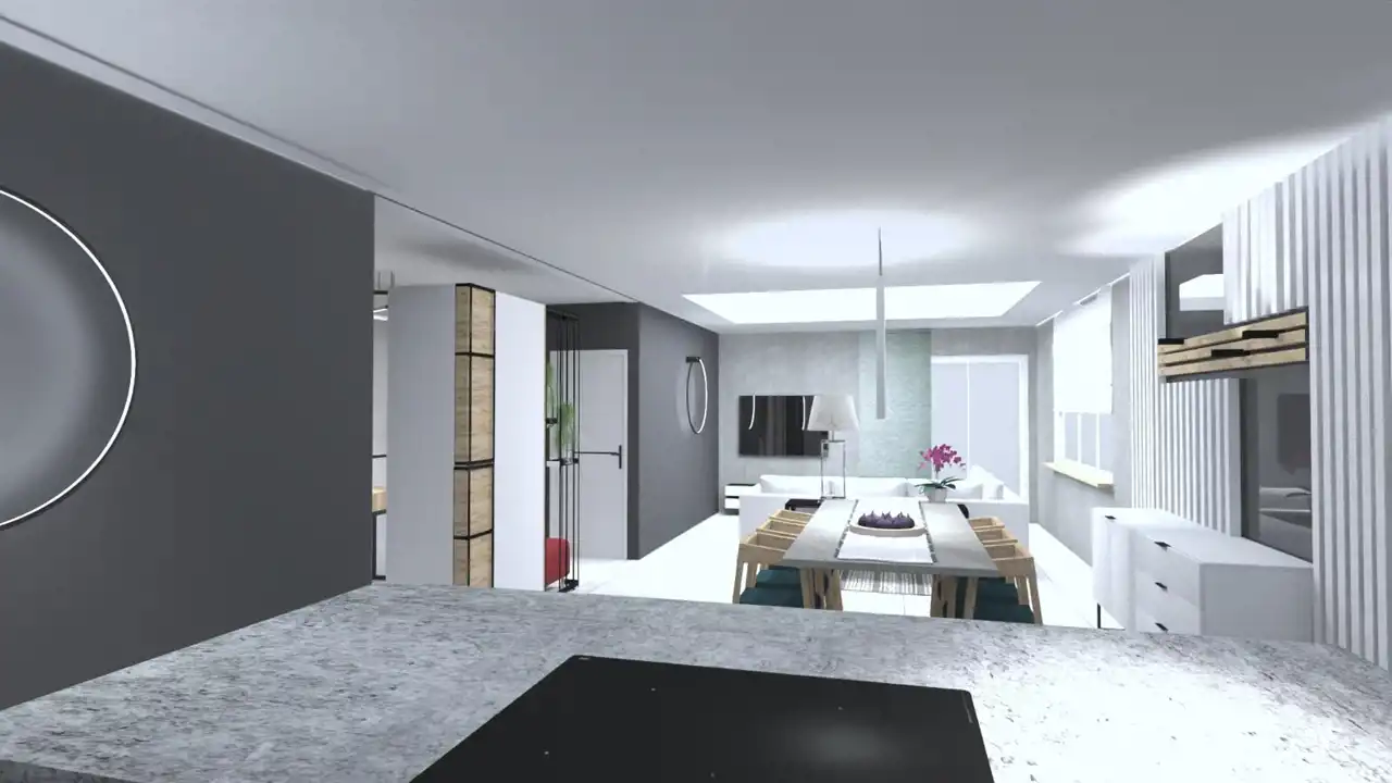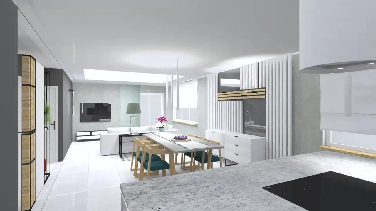 Przestronny salon z aneksem kuchennym