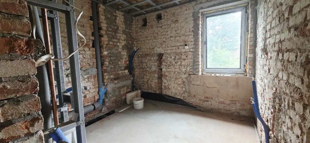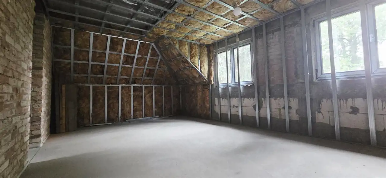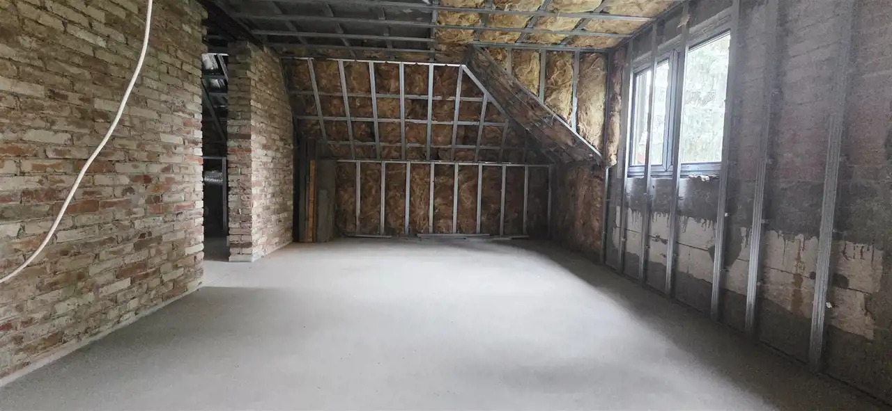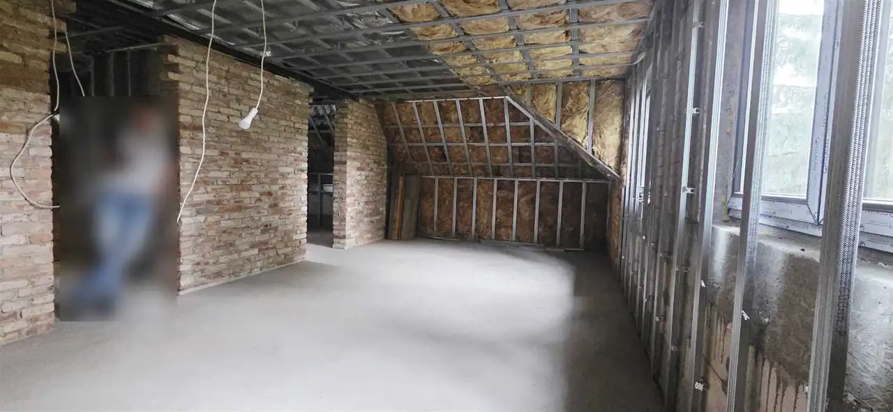 Cały budynek przeszedł kompleksową modernizację – wymieniono dach (więźba, dachówka, kominy), podniesiono ściankę kolankową, wylano nowe stropy z drewna KVH oraz ocieplono dach i ściany. To doskonała propozycja dla osób szukających gotowego projektu z ogromnym potencjałem aranżacyjnym.