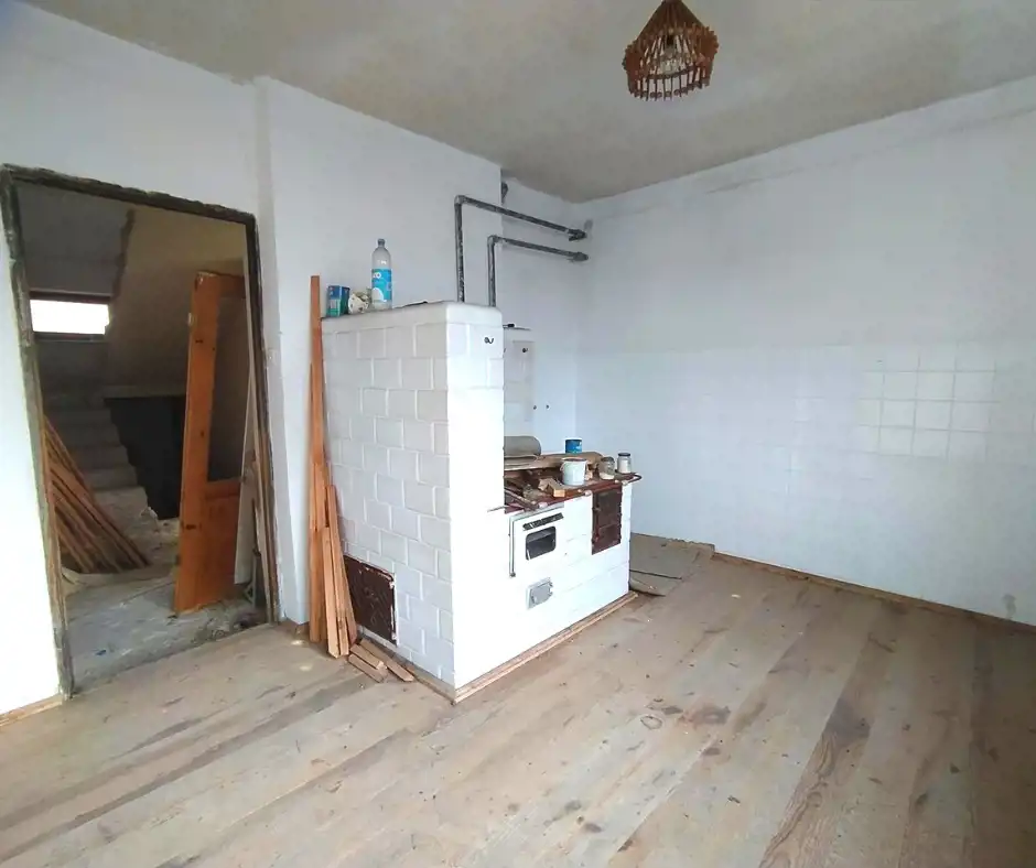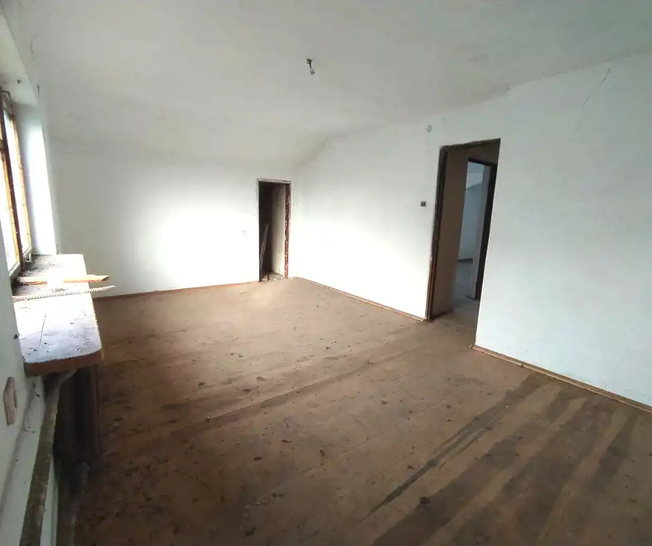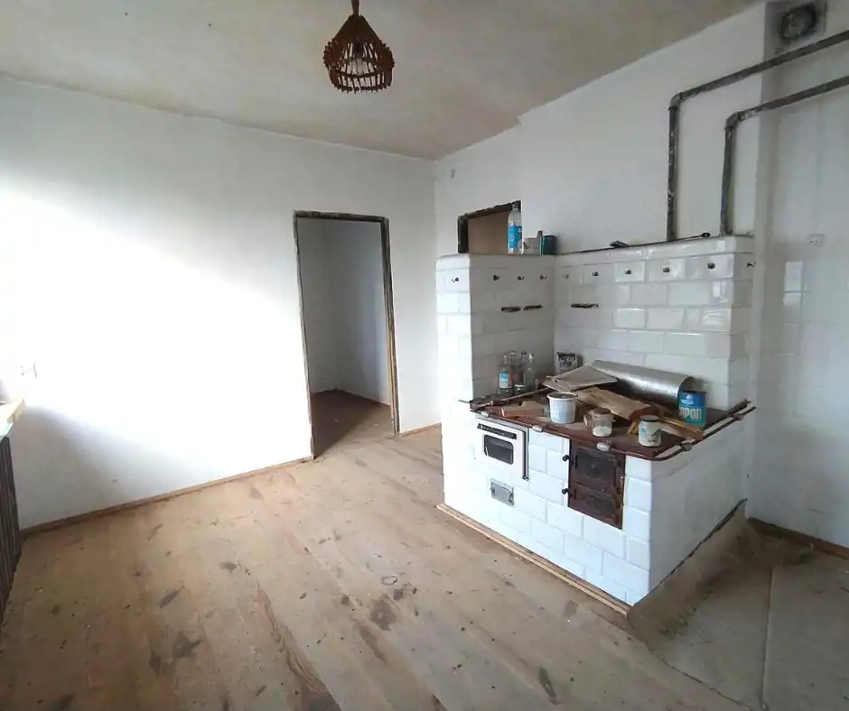 - niski parter: kotłownia z bezpośrednim wejściem z zewnątrz, 2 pomieszczenia, które można wykorzystać na kuchnię oraz pokój, korytarz,