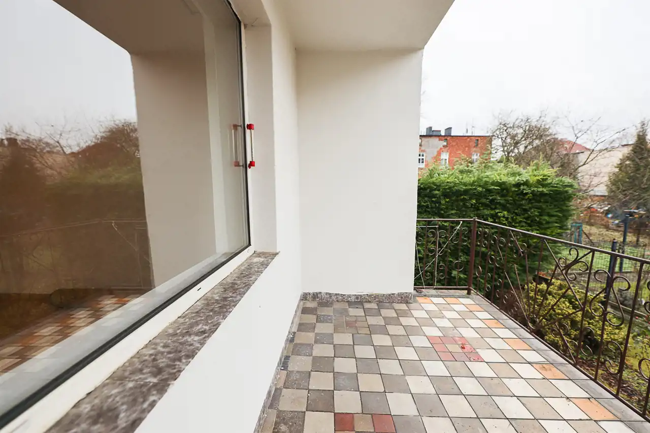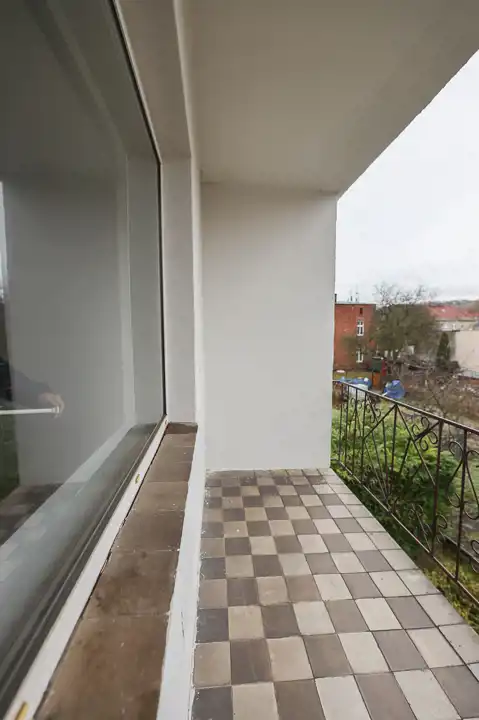 dwa duże, jasne pokoje z balkonami,