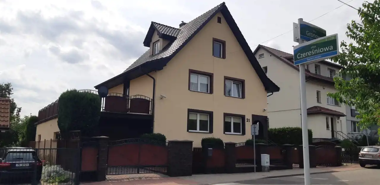 Dom położony jest w zacisznej, a jednak pobliskiej centrum dzielnicy Świerczewo. Niezwykle komfortowa lokalizacja zapewnia spokój oraz prywatność jej mieszkańcom, jednocześnie umożliwiając szybki dostęp do wszelkich kluczowych punktów miasta. Dojazd do centrum miasta zajmuje około 7 minut, co czyni tę nieruchomość idealną zarówno dla rodziny, jak i osób szukających wygodnej bazy wypadowej. W bezpośredniej okolicy znajdują się różnorodne lokale handlowo-usługowe takie jak Netto, Action czy Galeria Turzyn, a także szkoła podstawowa czy miejsca rekreacji jak park trampolin. Do najbliższych przystanków autobusowych można dotrzeć w około 10 minut spacerem.