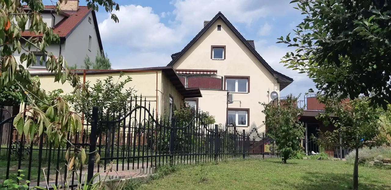 Dom wolnostojący usytuowany jest na dużej, zagospodarowanej działce mierzącej 607 m2. Teren jest ogrodzony, zagospodarowany i zadbany, a w jego skład wchodzą także dwa pawilony mieszkalne, dotychczas wynajmowane. Duży garaż ciągnący się przez całą długość domu zmieści dwa samochody osobowe. W budynku funkcjonuje ogrzewanie gazowe.