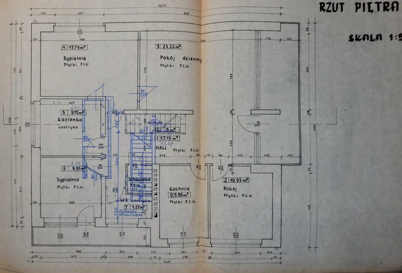 - 4 pokoje (23,22 m2, 15,79 m2, 10,93 m2, 8,51 m2)