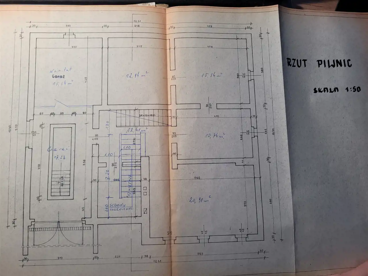 - 5 pomieszczeń (20,91 m2, 15,54 m2, 15,54 m2, 12,94 m2, 10,74 m2)