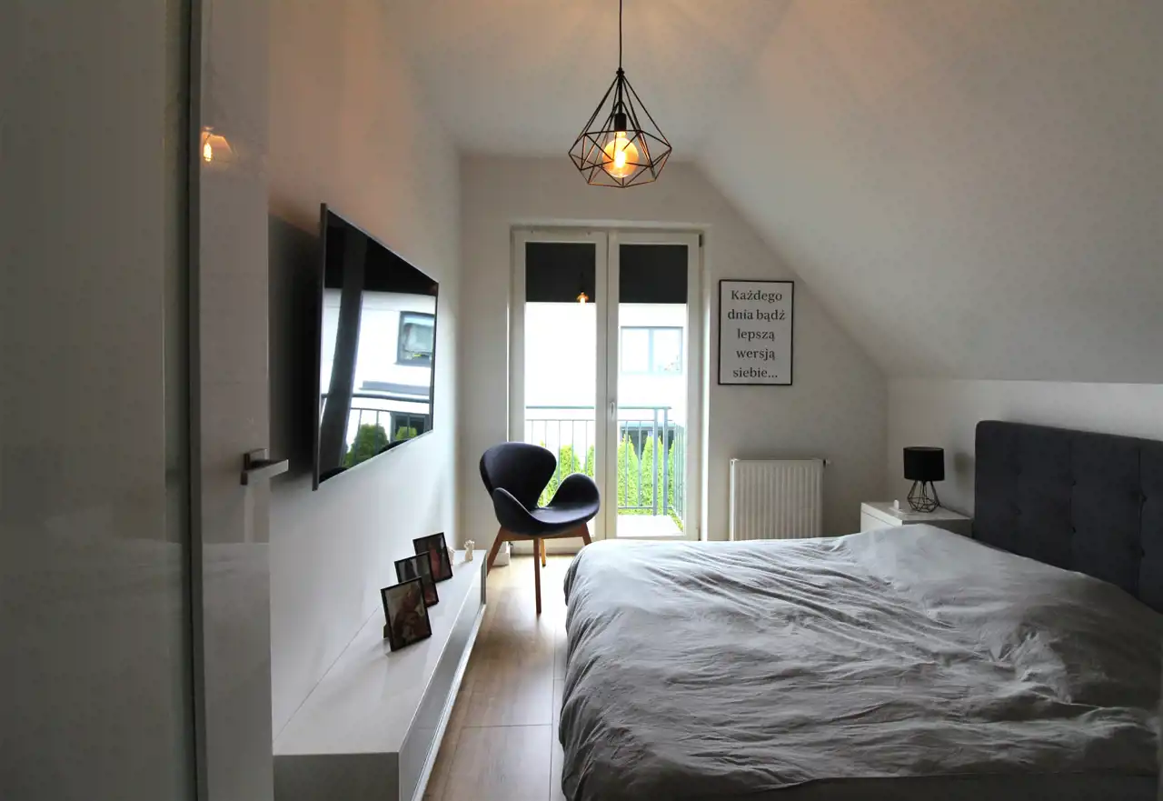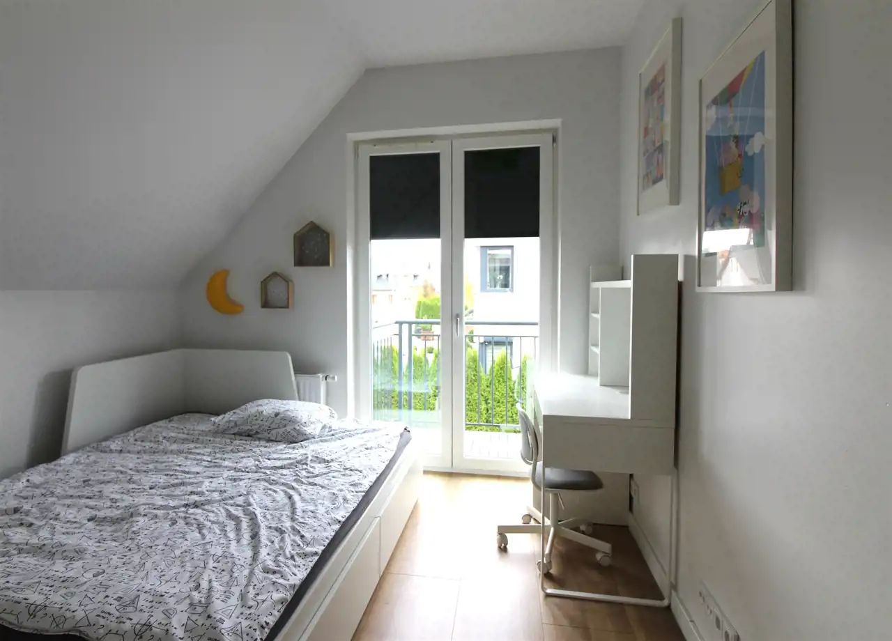 - trzech ustawnych pokoi (każdy o powierzchni użytkowej ok. 9 m2), w tym dwa pokoje mają wyjście na balkon od strony ogrodu,