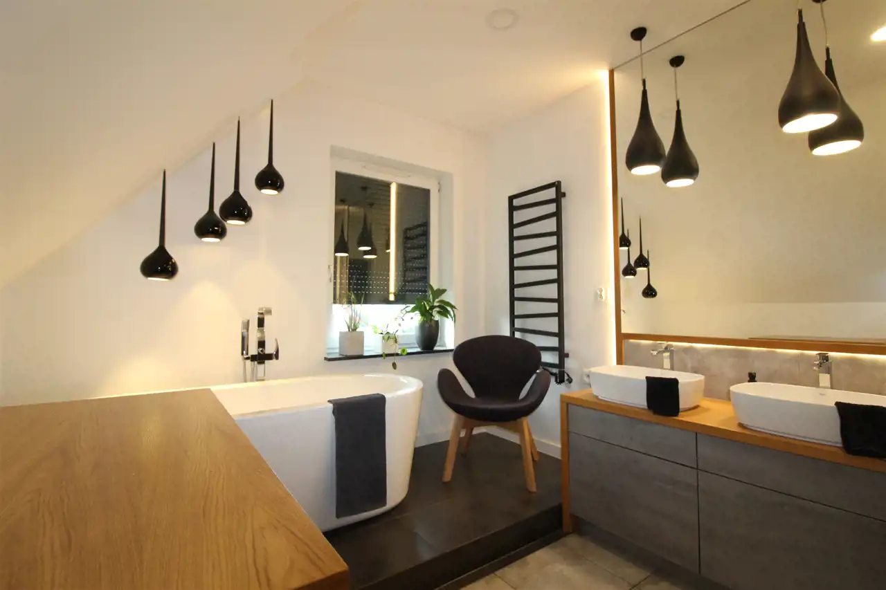 - przestronnej łazienki z toaletą,