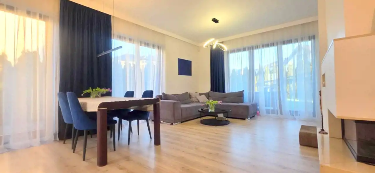 Ten dom to propozycja dla osób, które szukają gotowej, dopracowanej przestrzeni do życia, w której każdy element ma swoje miejsce. Duży taras, ogród, jasne wnętrza, funkcjonalny układ oraz wyjątkowo spokojna okolica sprawiają, że jest to nieruchomość, która szybko zyska zainteresowanie.