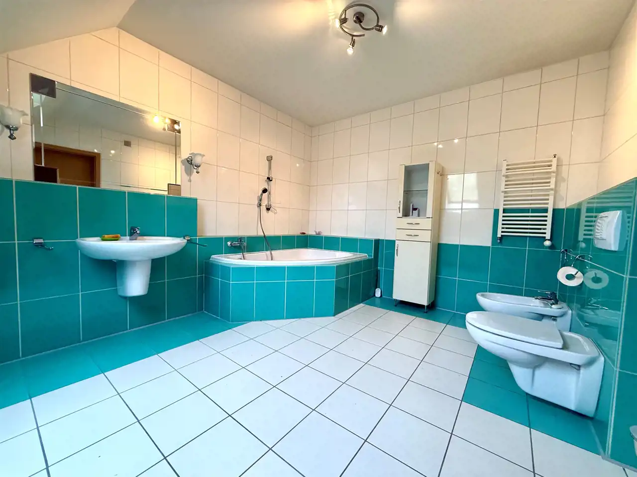 - łazienka (11,1 m²) z wanną, WC, bidetem i możliwością montażu prysznica,