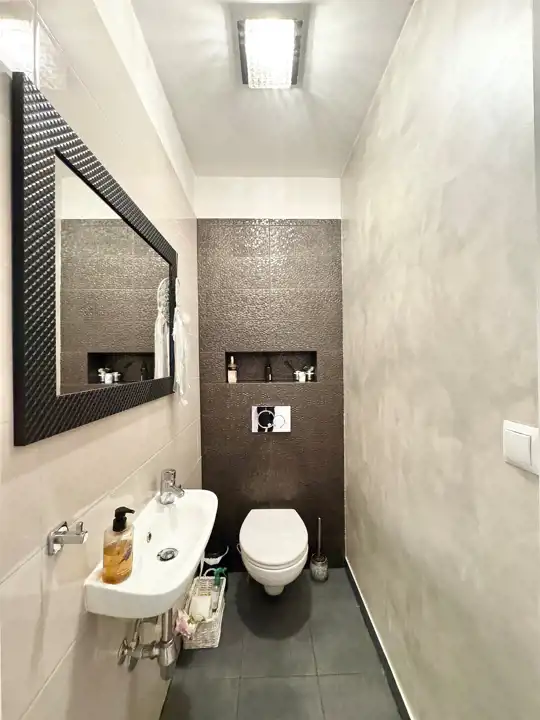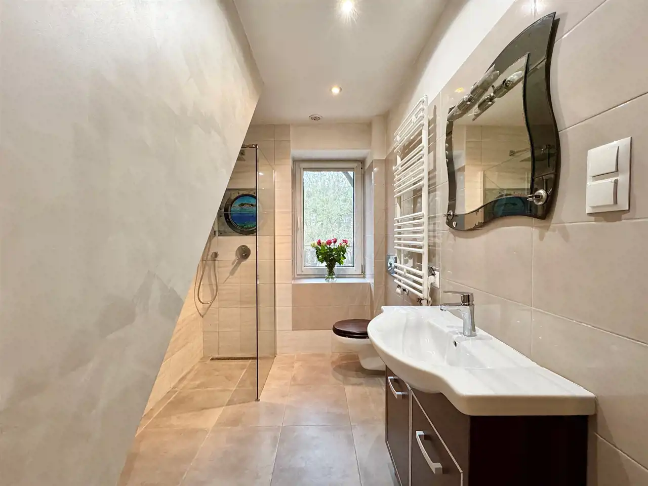 - Poziom -1: 3 ogrzewane pomieszczenia (idealne na pokój do gier, saunę, piwniczkę na wina), kotłownia z pralnią wyposażona w piec gazowy dwuobiegowy z zamkniętą komorą spalania i zasobnikiem wody na 60 litrów firmy Brotje oraz zmiękczacz wody.