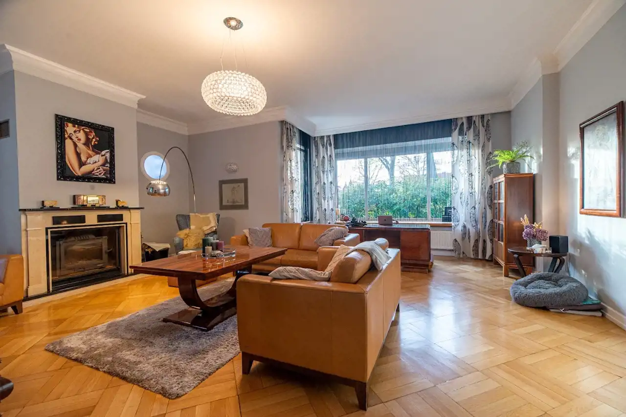 - Przestronny salon z kominkiem i oryginalnymi, poniemieckimi, rozsuwanymi drzwiami prowadzącymi do jadalni,