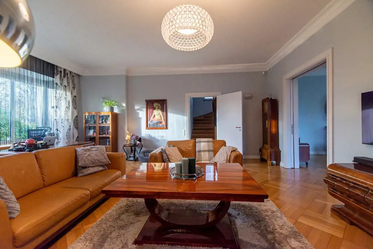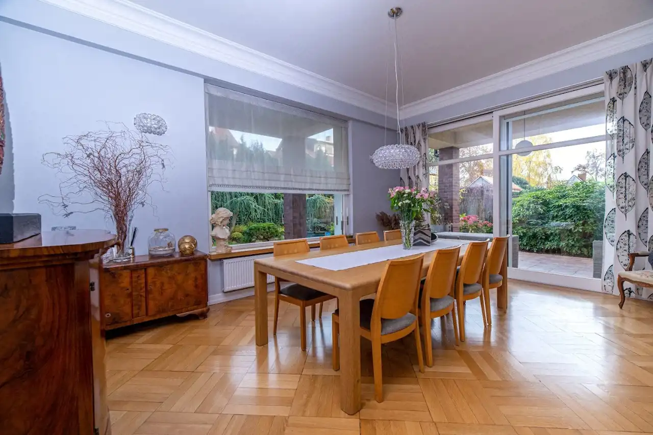 Ta poniemiecka willa w stylu Art Deco o powierzchni użytkowej 297 m² (powierzchnia całkowita 447 m²) z garażem o powierzchni 35 m² została kompleksowo odrestaurowana z wykorzystaniem materiałów najwyższej jakości, z zachowaniem oryginalnego charakteru i ponadczasowej elegancji.