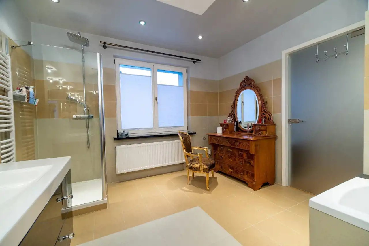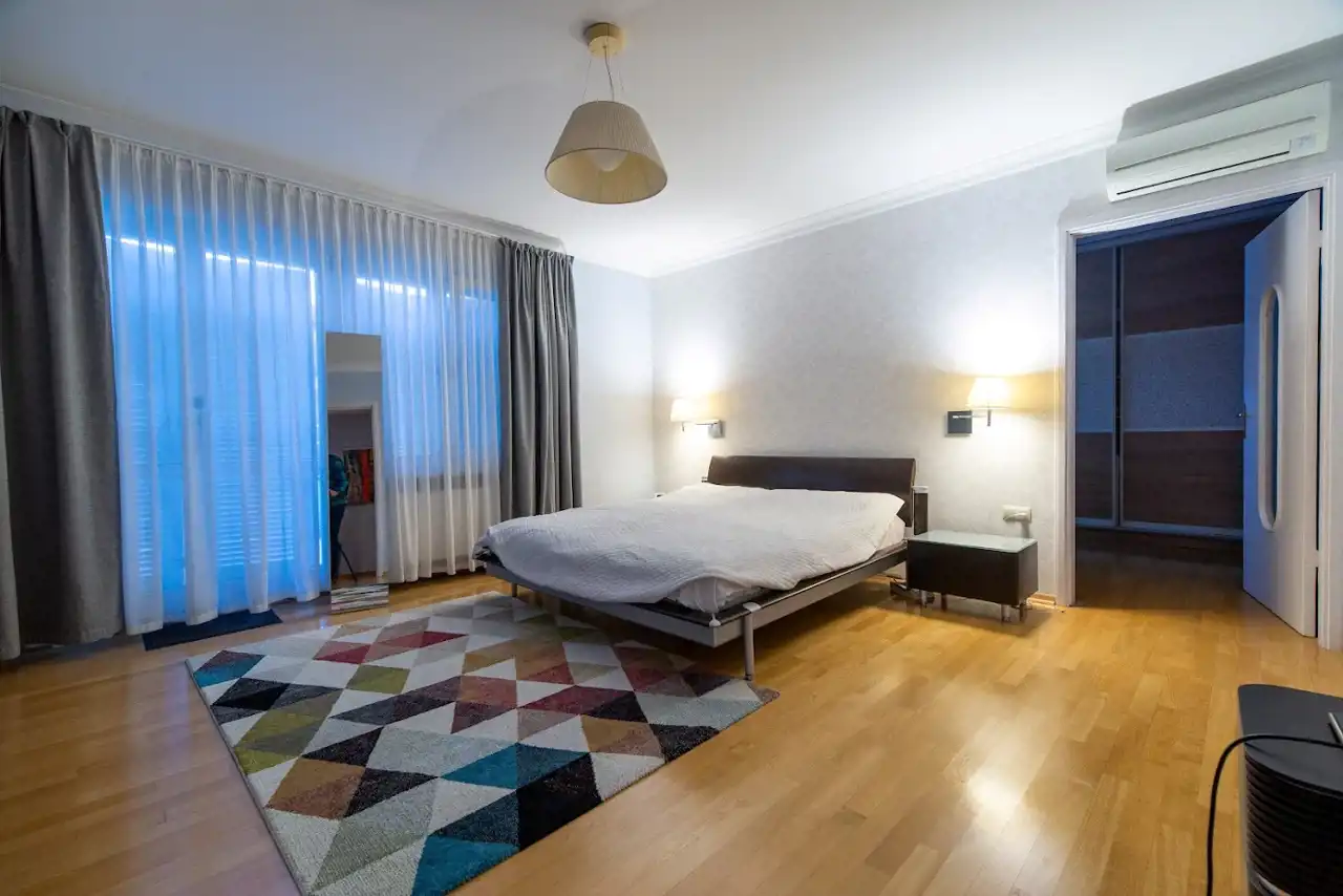 - Sypialnia typu master bedroom (z klimatyzacją) z prywatnym salonem kąpielowym, dużą garderobą i wyjściem na taras,