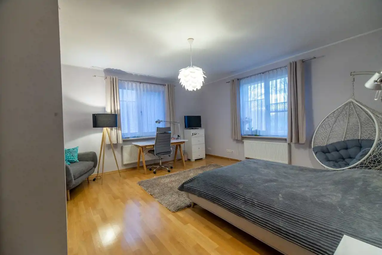 - Wydzielona strefa sypialniana i wypoczynkowa,