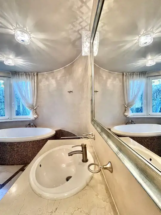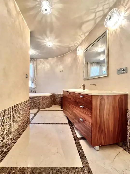 Ta wyjątkowa nieruchomość o powierzchni 357 m² została zaprojektowana i wykończona z wykorzystaniem materiałów z absolutnie najwyższej półki. W każdym detalu widać dbałość o jakość, trwałość oraz ponadczasową elegancję. Naturalne drewno, kamień, marmur i szlachetne wykończenia tworzą wnętrza, które spełnią oczekiwania najbardziej wymagających właścicieli.