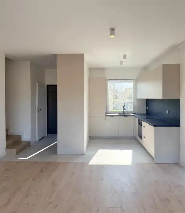 Dom oferuje funkcjonalny układ pomieszczeń, dużo naturalnego światła oraz prywatny ogródek, który stanowi świetne miejsce do odpoczynku po pracy.