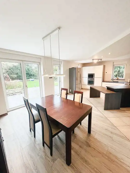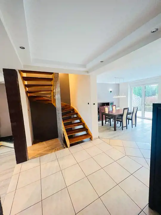 Oferujemy na wynajem wyjątkowy dom położony w miejscowości Osów – idealną propozycję dla osób poszukujących eleganckiego, komfortowego miejsca do życia. Nieruchomość usytuowana jest w malowniczej okolicy, na przestronnej działce o powierzchni około 614 m², co zapewnia prywatność oraz kontakt z naturą.
