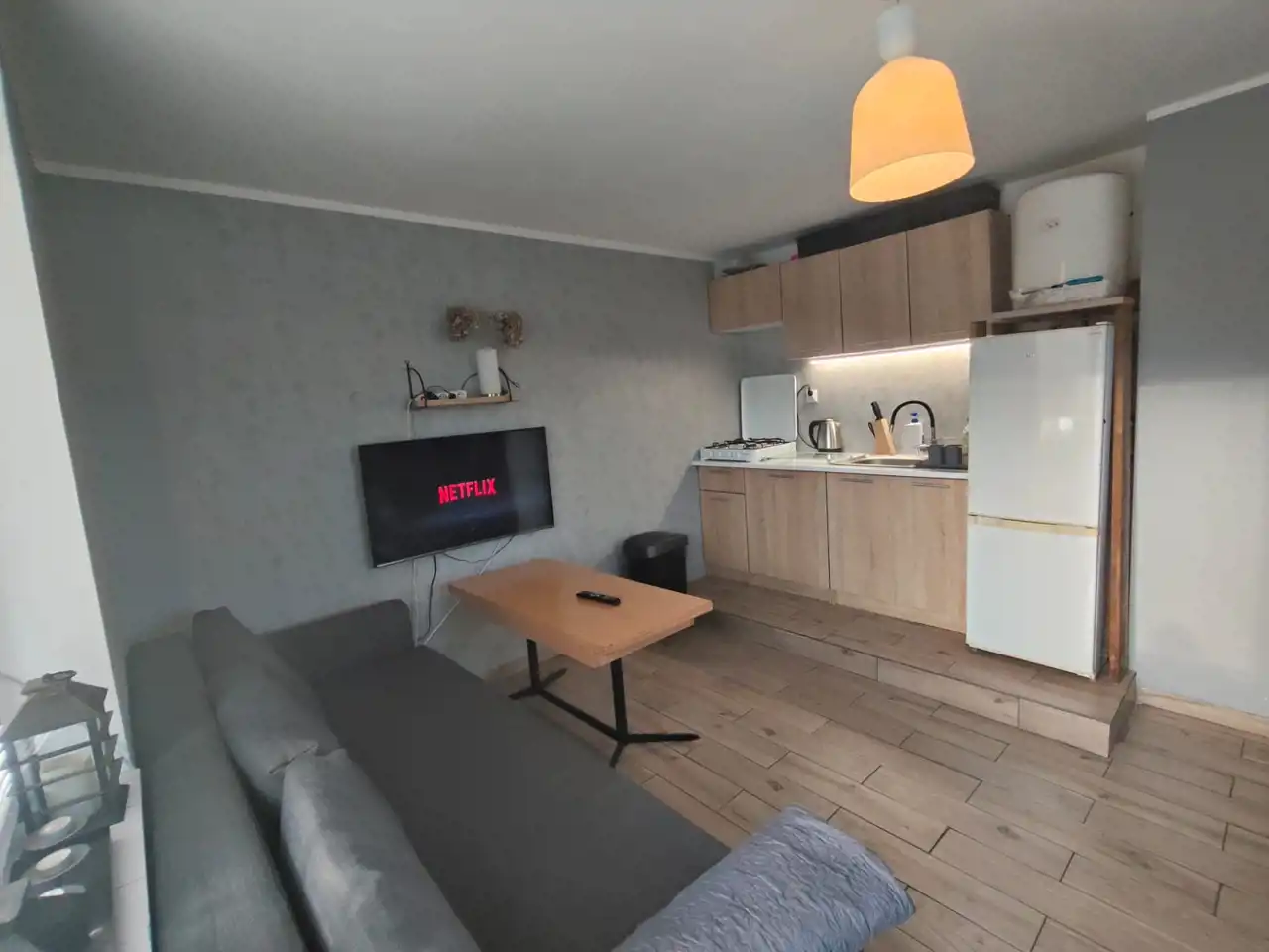 Domek jest ciepły i przygotowany do użytkowania również w sezonie zimowym.