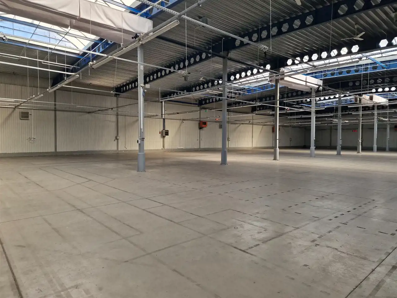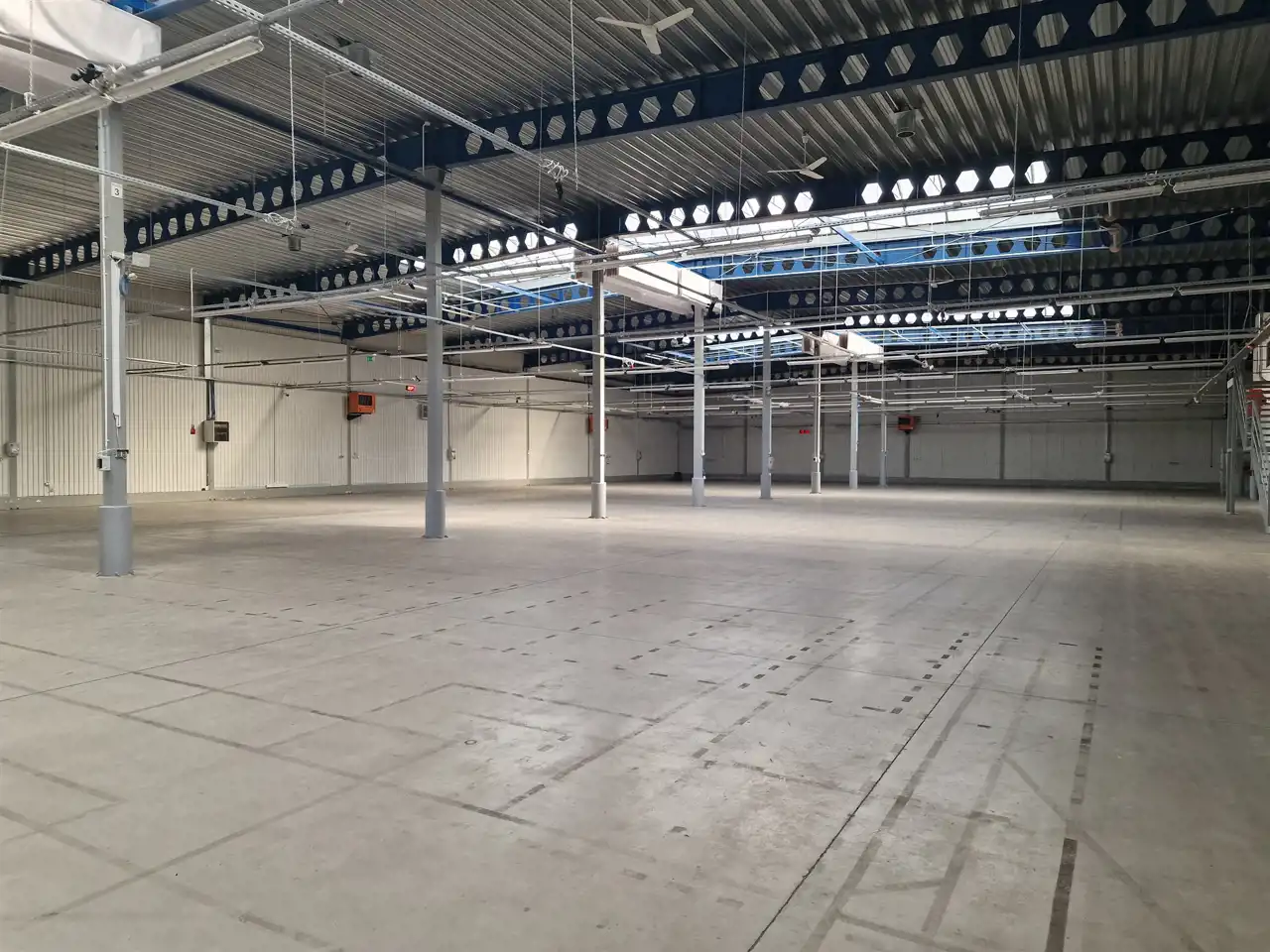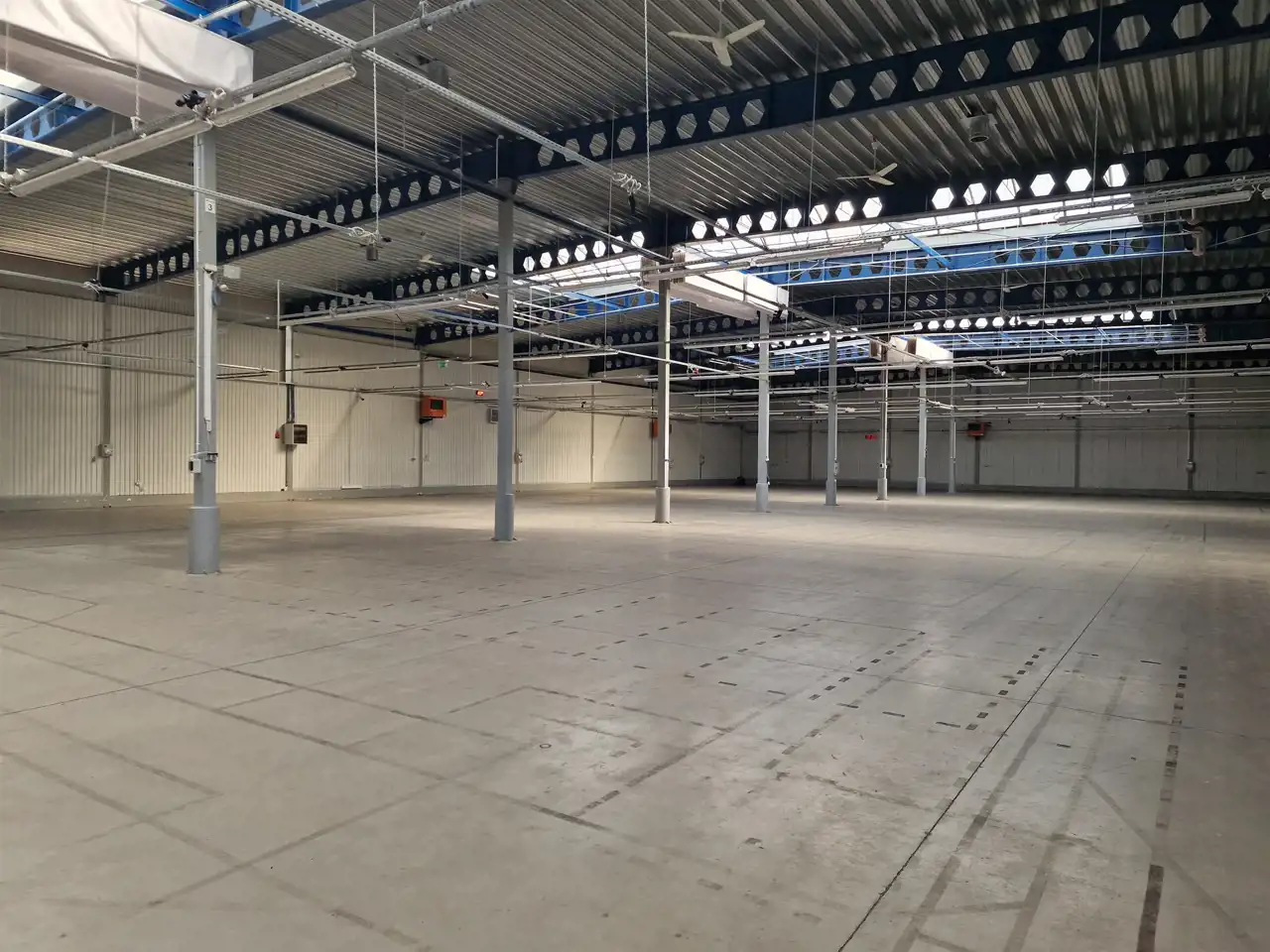 -Hala dobrze doświetlona światłem dziennym poprzez świetliki oraz okna,