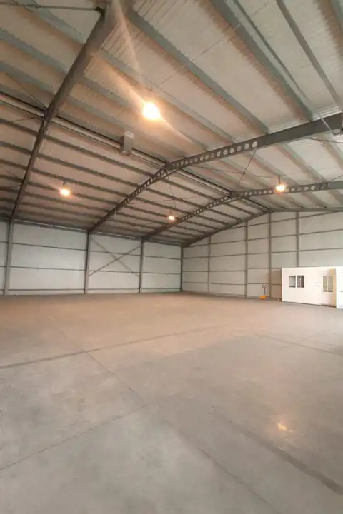 Do wynajęcia przestronna hala o powierzchni 1050 m², idealna na magazyn, produkcję lub handel hurtowy. Hala ma wysokość 6–8 m, konstrukcję stalową i posadzkę niepylącą.
