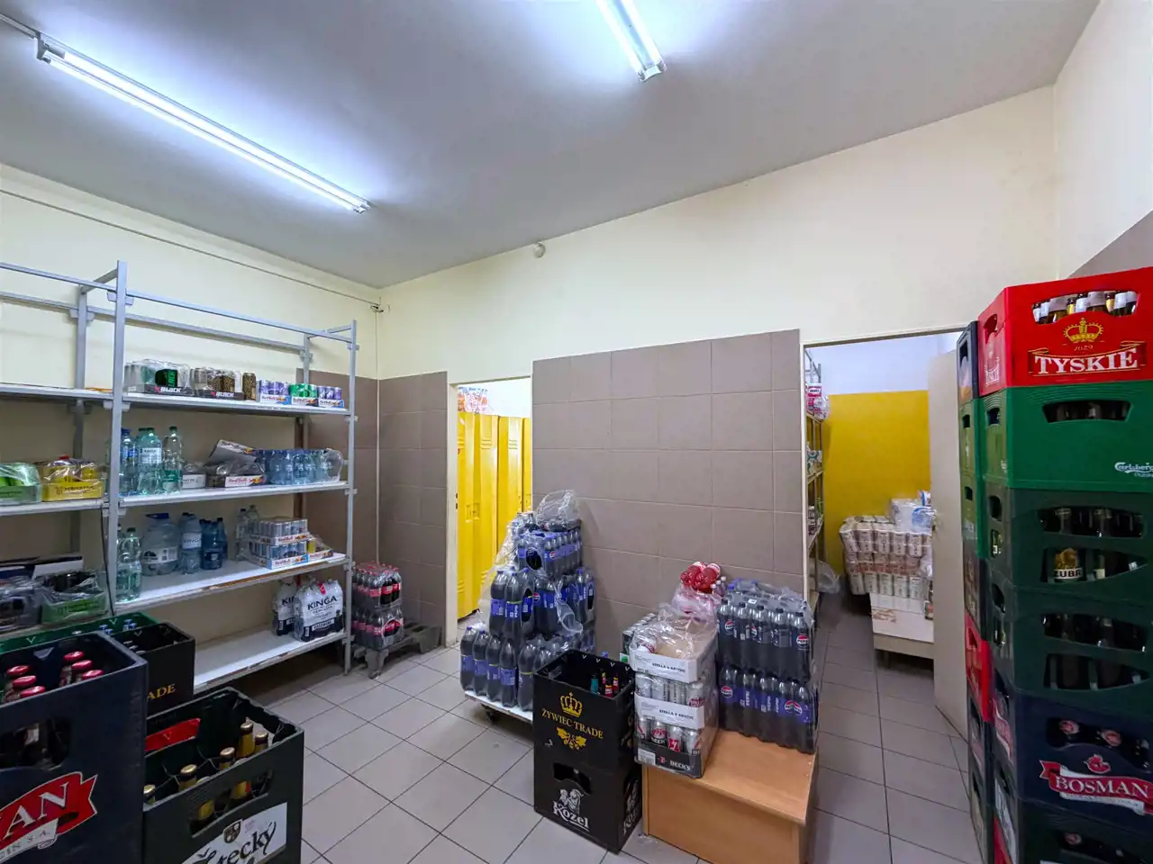 Lokal w tym momencie pełni funkcję sklepu spożywczego, sala główna, magazyn, pomieszczenia sanitarne, chłodnia a także duży parking, który daje możliwość zaparkowania samochodów przez klientów, umożliwiający bezproblemowe zaopatrzenie sklepu przez dostawców.
