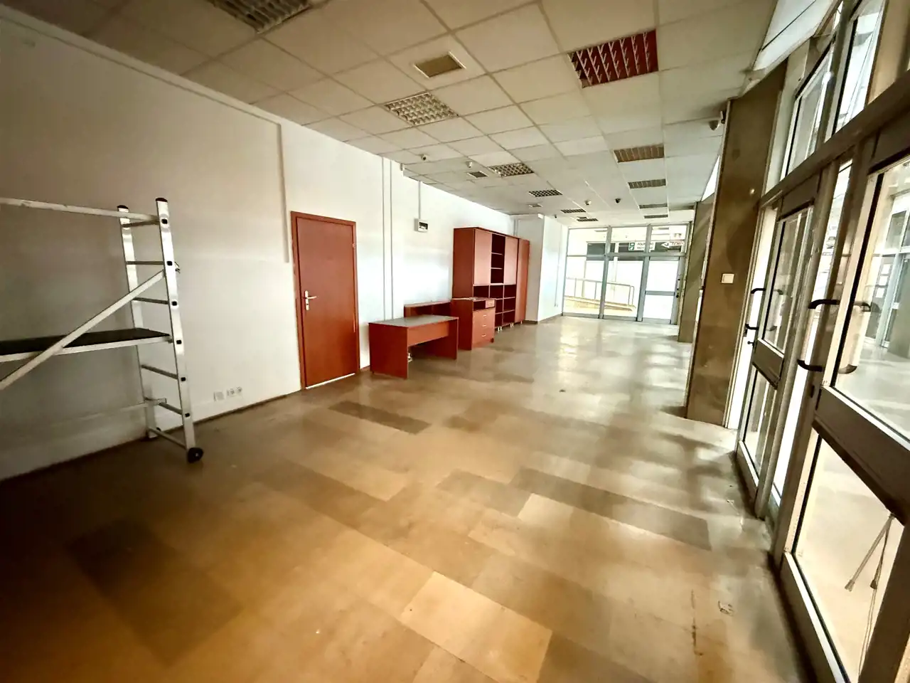 Aktualnie lokal składa się z głównej przestrzeni handlowej + dodatkowy pokój / sala / zaplecze.
