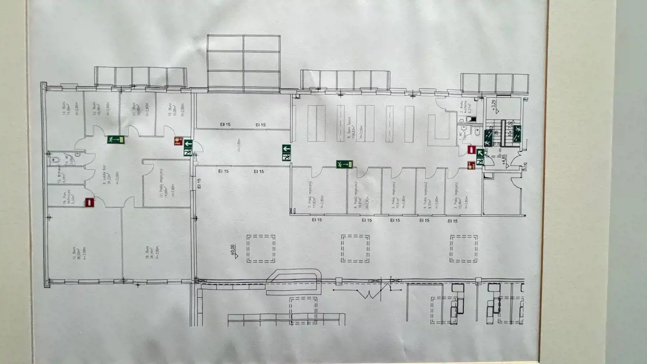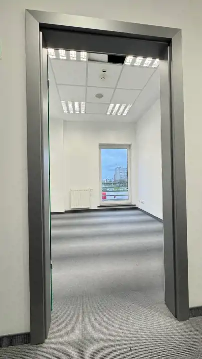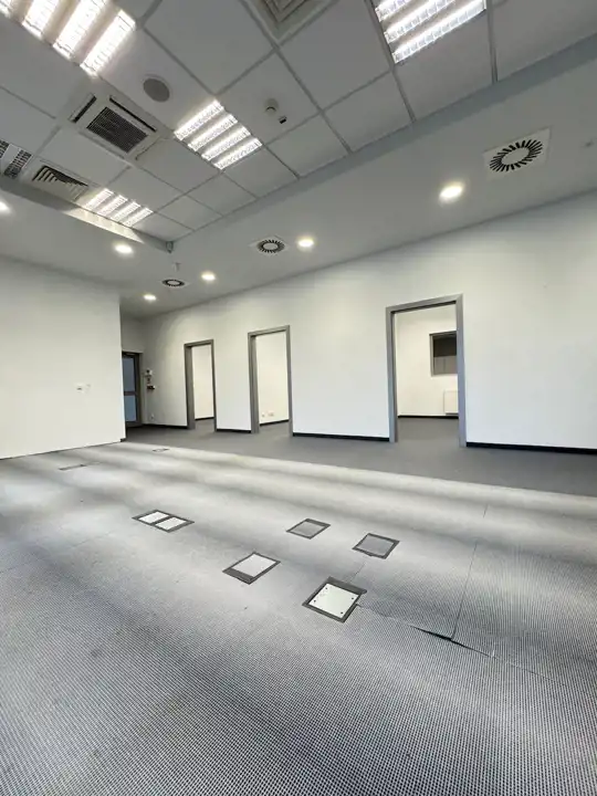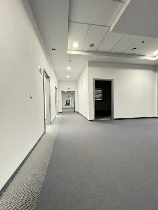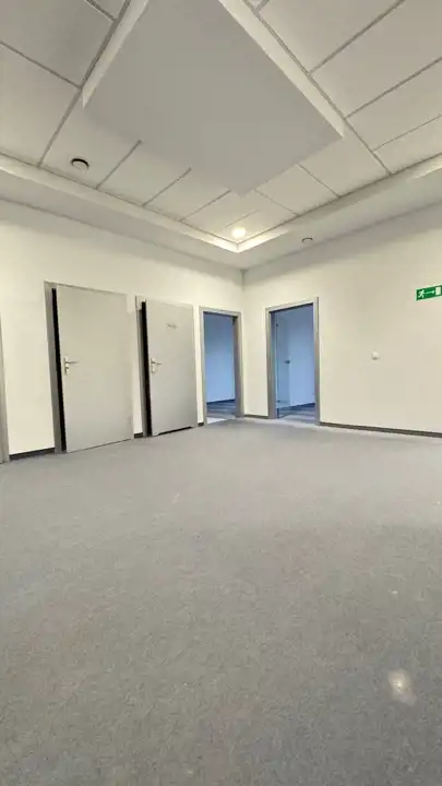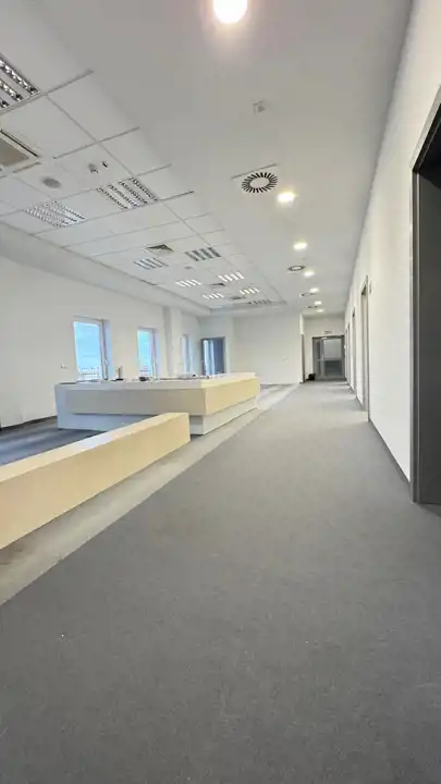 The unit features an independent entrance directly from a large parking area, ensuring convenient access for both clients and staff. The layout consists of 11 functional rooms, a spacious sales/reception/registration hall, two sanitary rooms, a kitchen and a dedicated server room. The arrangement allows for extensive adaptation to a wide range of business operations.