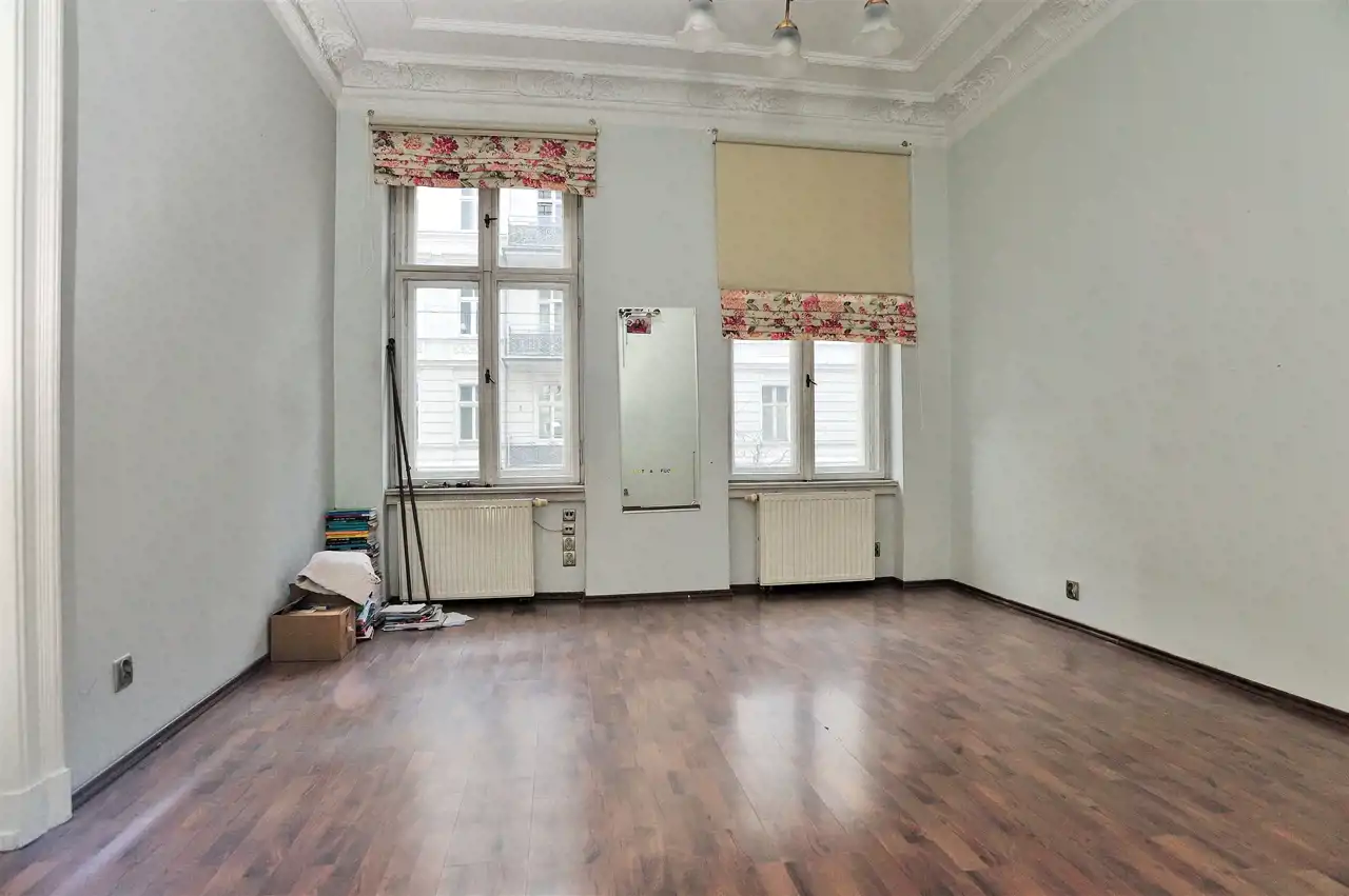 Na powierzchnię lokalu składają się trzy pokoje, w których zachowane zostały sztukaterie, stary piec, duże okna, jeden z pokoi znajdujący się od podwórka idealny jako pokój konferencyjny lub gabinet, dodatkowo małe archiwum, sekretariat z aneksem kuchennym i łazienka z kabiną prysznicową.