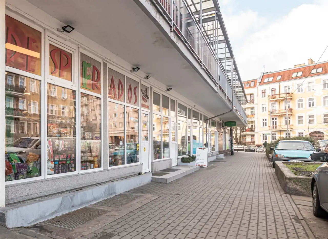 Lokal położony jest w budynku handlowo-usługowym, posiada dwa wejścia: jedno od frontu, drugie z tyłu budynku dla dostawców. Lokal składa się z dziewięciu pomieszczeń: