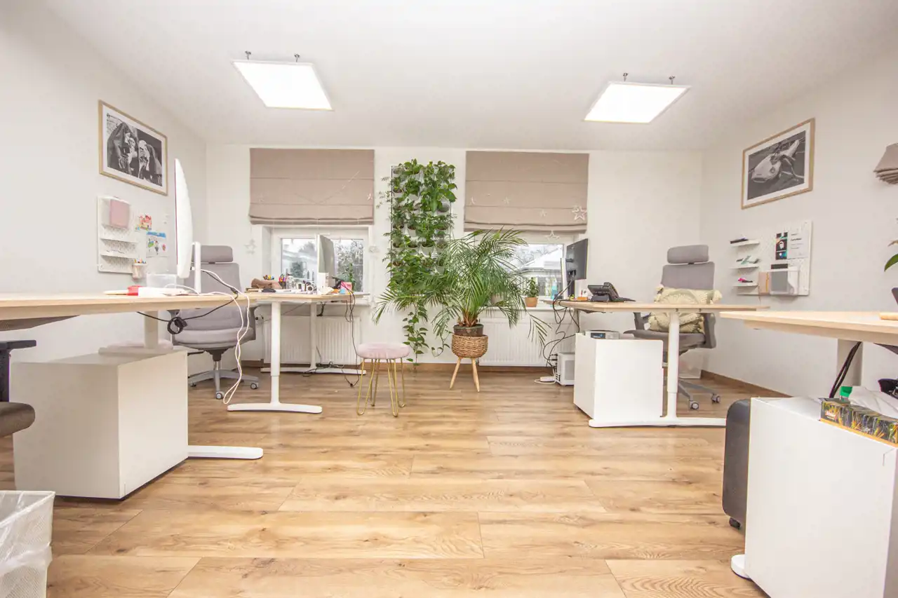 - duży open space ( w którym mieszczą się 4 biurka)