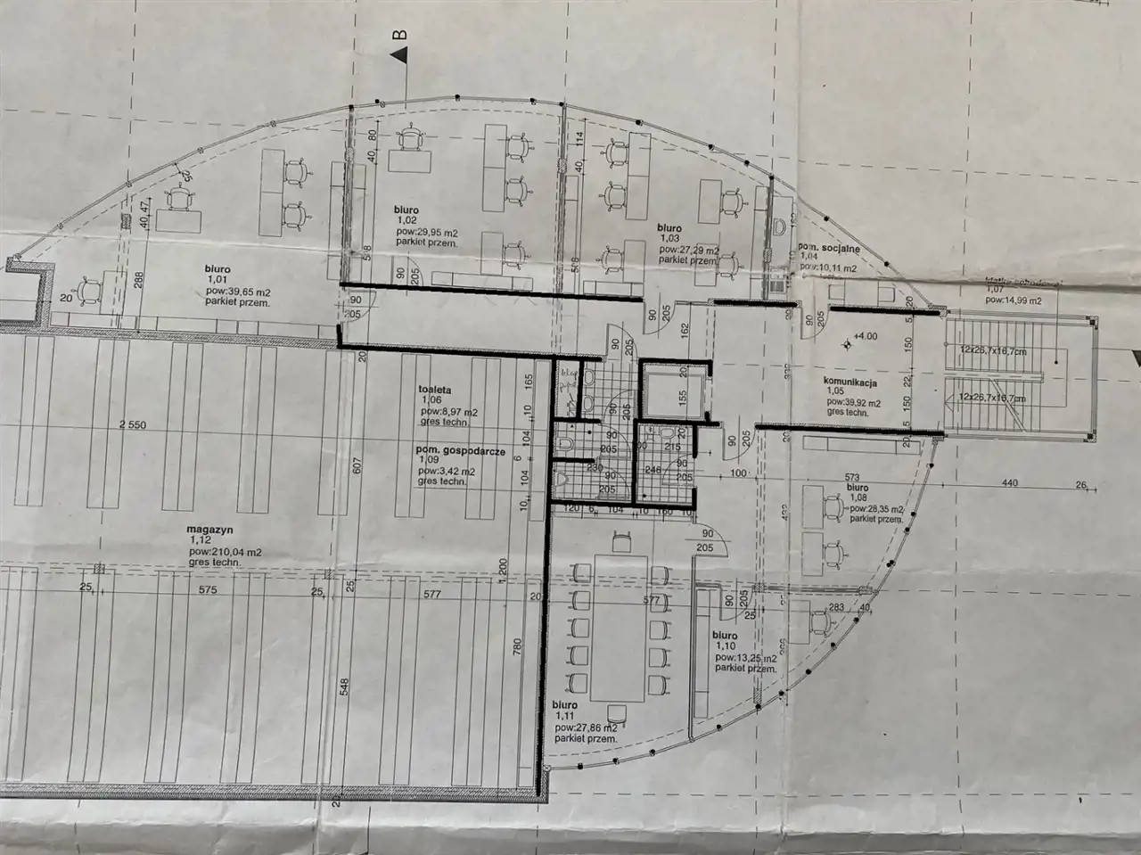 - otwarta przestrzeń biurowa 117m2 (aktualnie wydzielone trzy pomieszczenia - ścianki działowe)