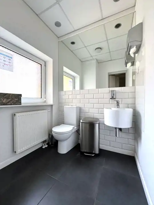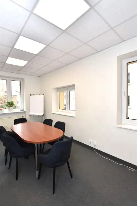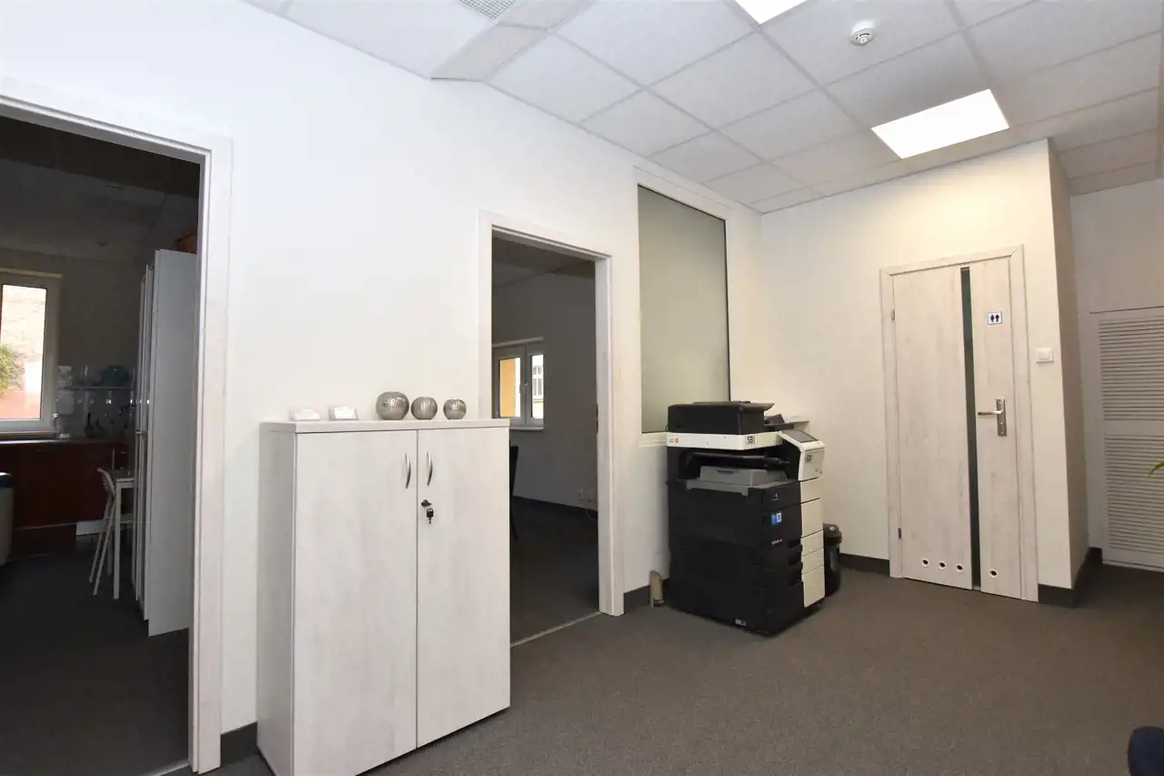 Na 125m2 powierzchni użytkowej lokalu składają się 3 pokoje biurowe, sala konferencyjna, zaplecze socjalne oraz wc.