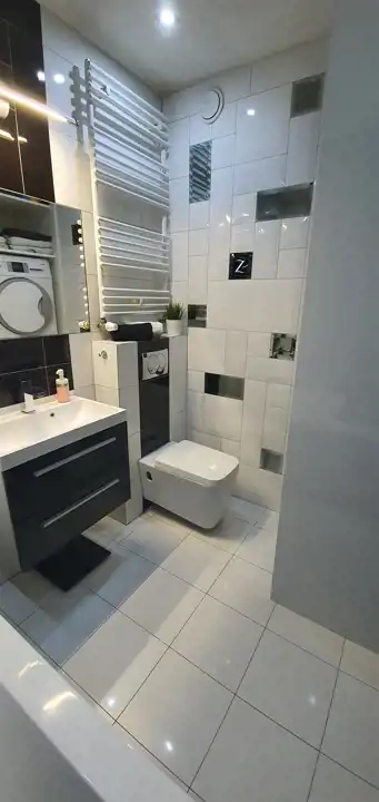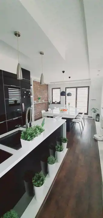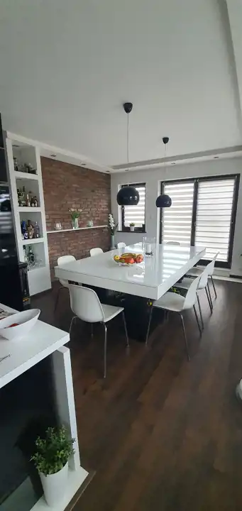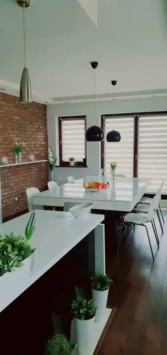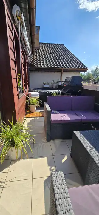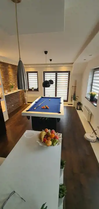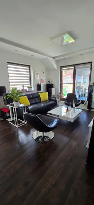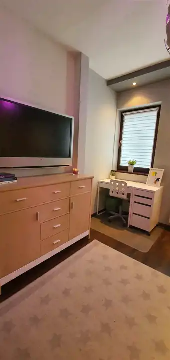Mieszkanie 3 pok położone na II piętrze w budynku z cegły przy ul Kalinowej. Mieszkanie zaprojektowane wg własnego projektu, robi bardzo dobre wrażenie. Salon z jadalnią i kuchnią tworzy jedną całość. Kształt prostokątny, w środkowej części jest kuchnia z wyspą, po prawej stronie jest salon z wyjściem na taras. Po lewej stronie od kuchni jest jadalnia. Właściciele wykorzystali stół bilardowy przykrywając go blatem. Ten mebel ma "podwójną funkcję". Na co dzień jadalnianą, a gdy mieszkańcy zechcą zdejmują blat i mają stół bilardowy. Z jadalni jest wyjście na kolejny taras. Duży przedpokój ma prawie 10 m2. Jeden z pokoi ma 10,10 m2, obok jest łazienka z wanną, WC. Kolejny pokój ma 9,4 m2 ( sypialnia) z własną łazienką. Nad mieszkaniem jest powierzchnia poddasza ok 50 m2 ( liczona po podłodze). Obecnie śluzy jako magazynek, lecz może być w łatwy sposób dołączona do mieszkania i tym samym zyskuje eis dodatkowy pokój. Czynsz liczony dla 3 osób wynosi 500 zł . Ogrzewanie miejskie z SEC. W mieszkaniu poza siedziskami i kanapą w salonie może pozostać w cenie większość mebli. Okolica urokliwa, z każdej strony tereny zielone . Sklepy, przychodnia, szkoła. Do przystanku autobusowego jest parę minut. Do mieszkania przynależy piwnica ( 5,6 m2). Jest możliwość zakupu miejsca postojowego w garażu podziemnym za 100 000 zł . Termin wydania do uzgodnienia. Oferta na wyłączność. Zapraszam